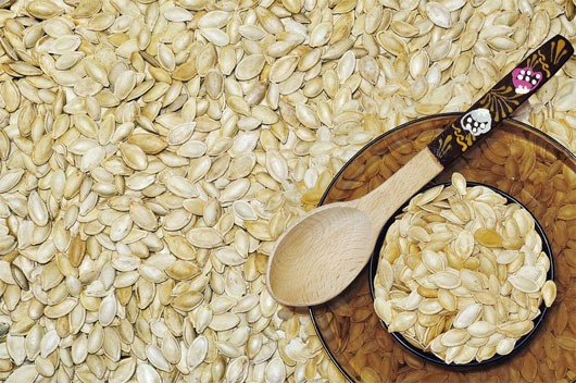 Hạt bí ít calo nhưng nhiều dưỡng chất, có thể giúp cải thiện một số bệnh liên quan đến tiền liệt tuyến và bàng quang, thậm chí trầm cảm. Nếu mua hạt bí rang sẵn trong siêu thị, bạn nên chọn loại không muối hoặc ít muối.