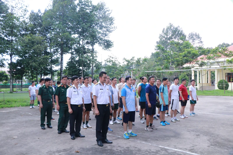 Cán bộ Lớp Học viện Chính trị dự khai mạc giải thi đấu bóng chuyền.