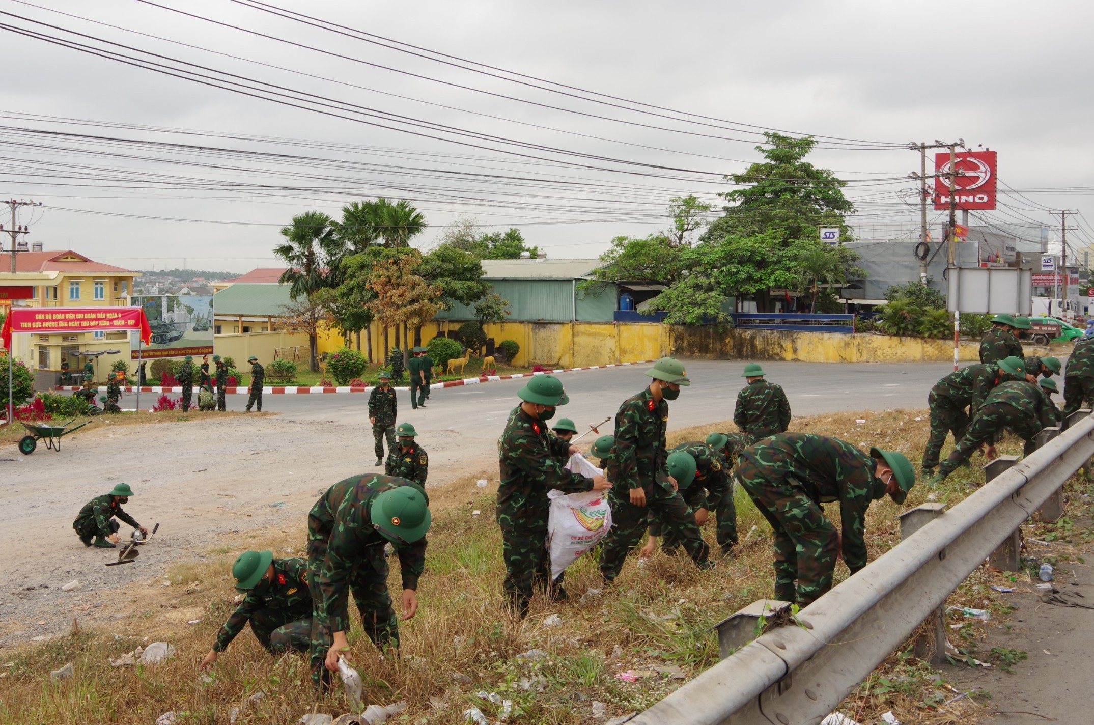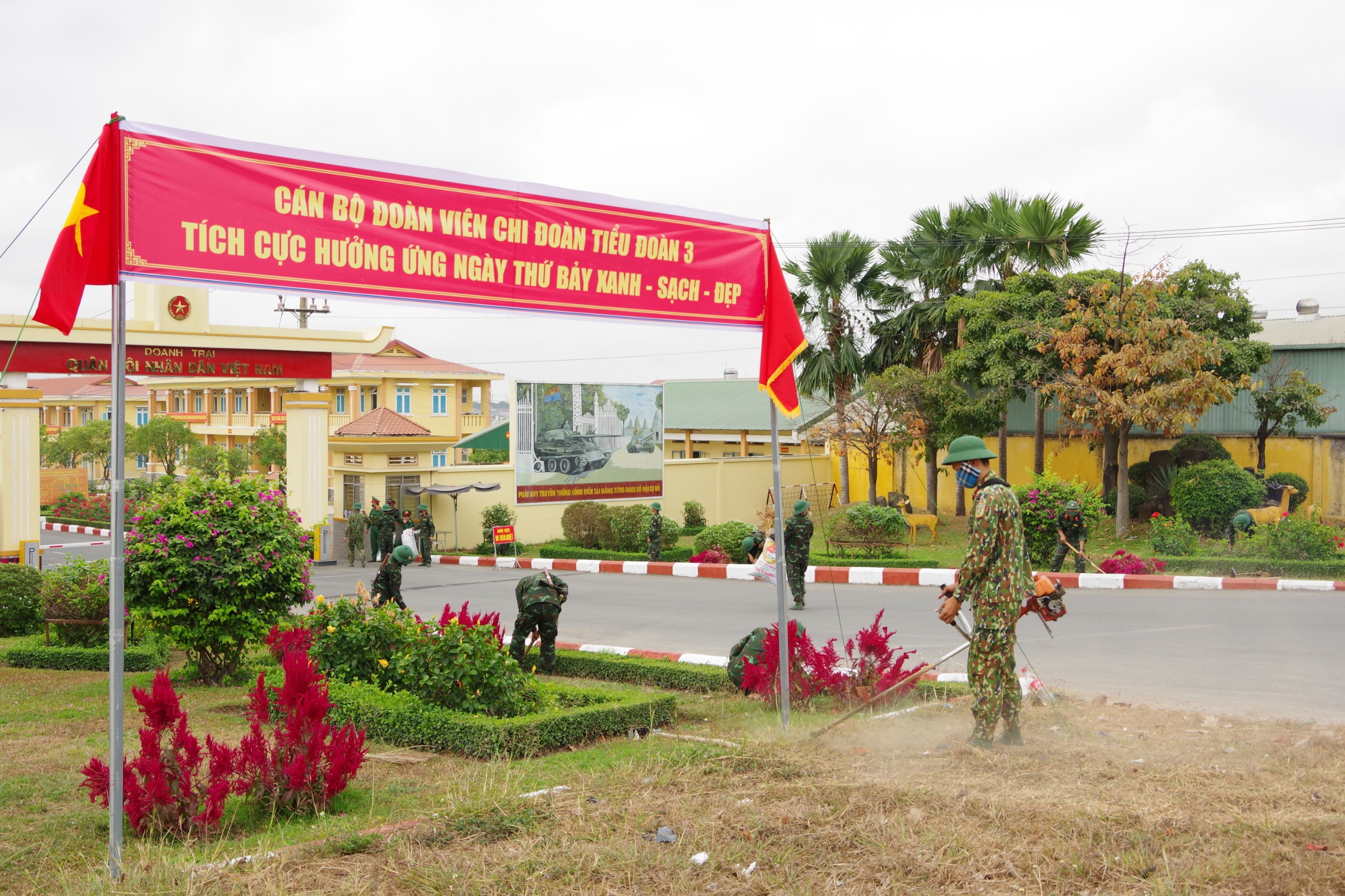 Ngoài ra, cán bộ, chiến sĩ, đoàn viên thanh niên dọn rác thải và gom nhặt ve chai xung quanh đơn vị, thao trường, bãi tập, vành đai đất quốc phòng. Đồng thời tuyên truyền, vận động đoàn viên thanh niên nâng cao ý thứ tự giác bảo vệ cảnh quan môi trường, xây dựng đơn vị không rác, xanh - sạch - đẹp.