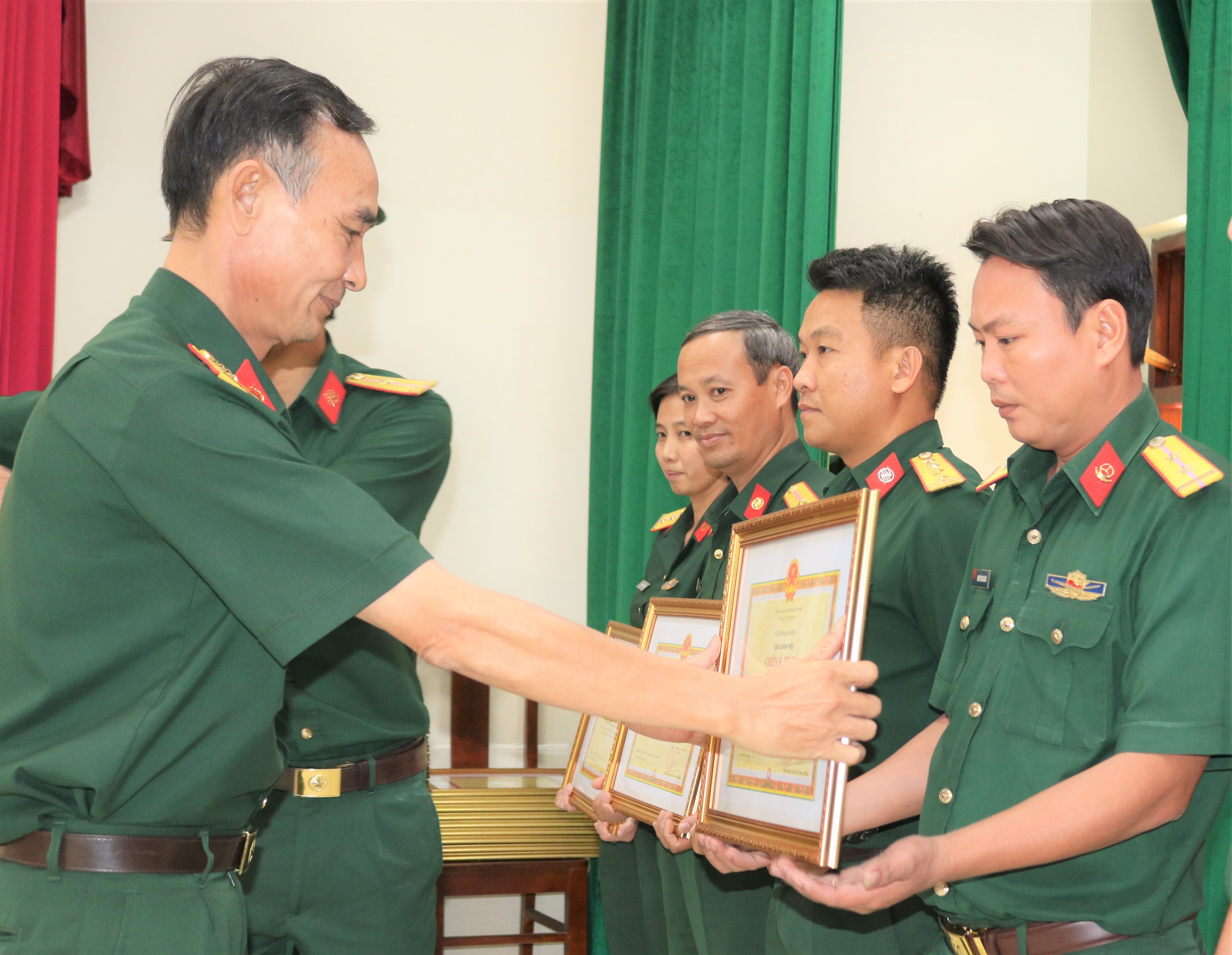 Đại tá Lê Văn Chí tặng bằng khen cho các tập thể, cá nhân