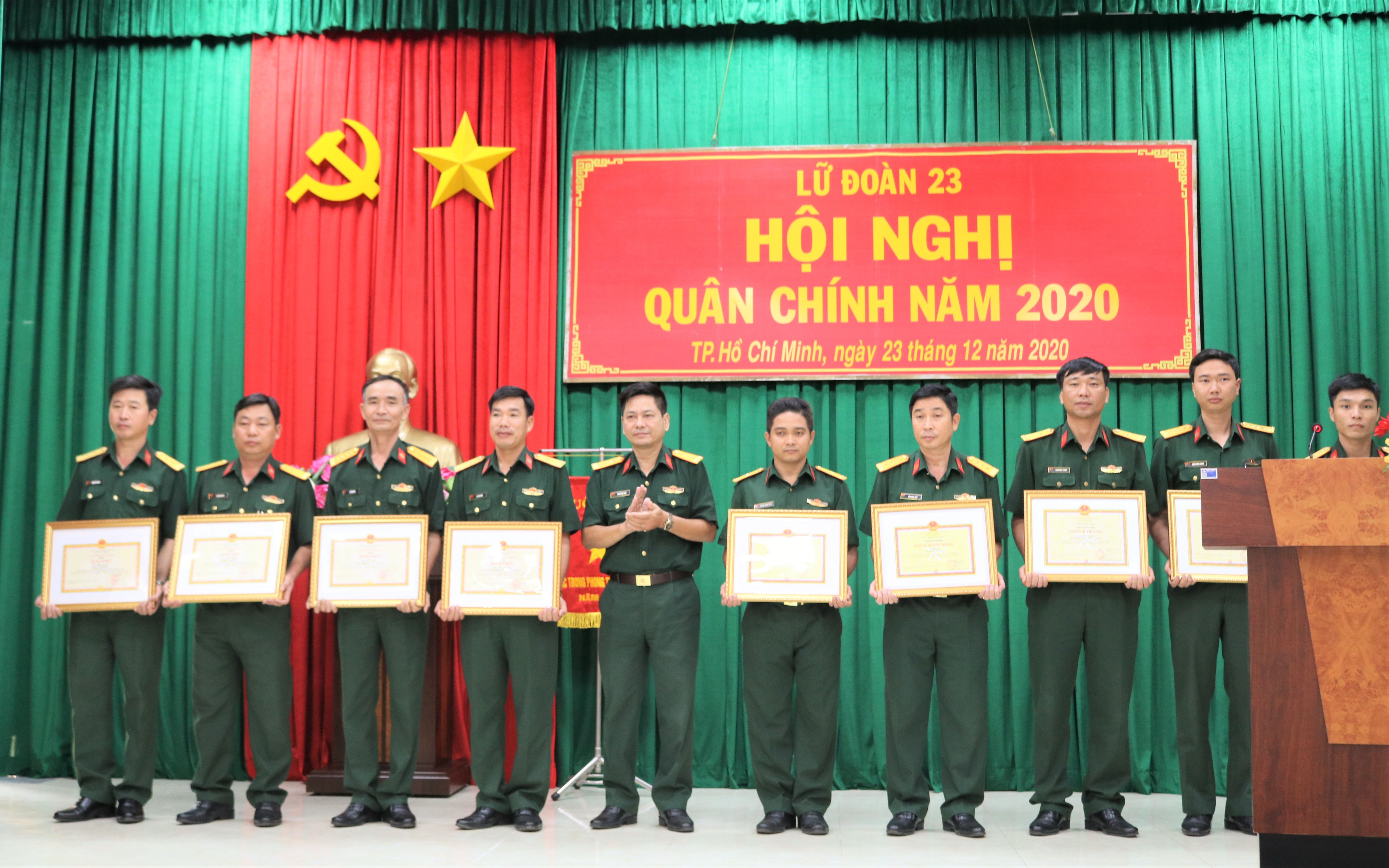 Đại tá Quách Anh Tuấn, Chính ủy Lữ đoàn tặng bằng khen của Bộ Quốc phòng cho các tập thể, cá nhân.