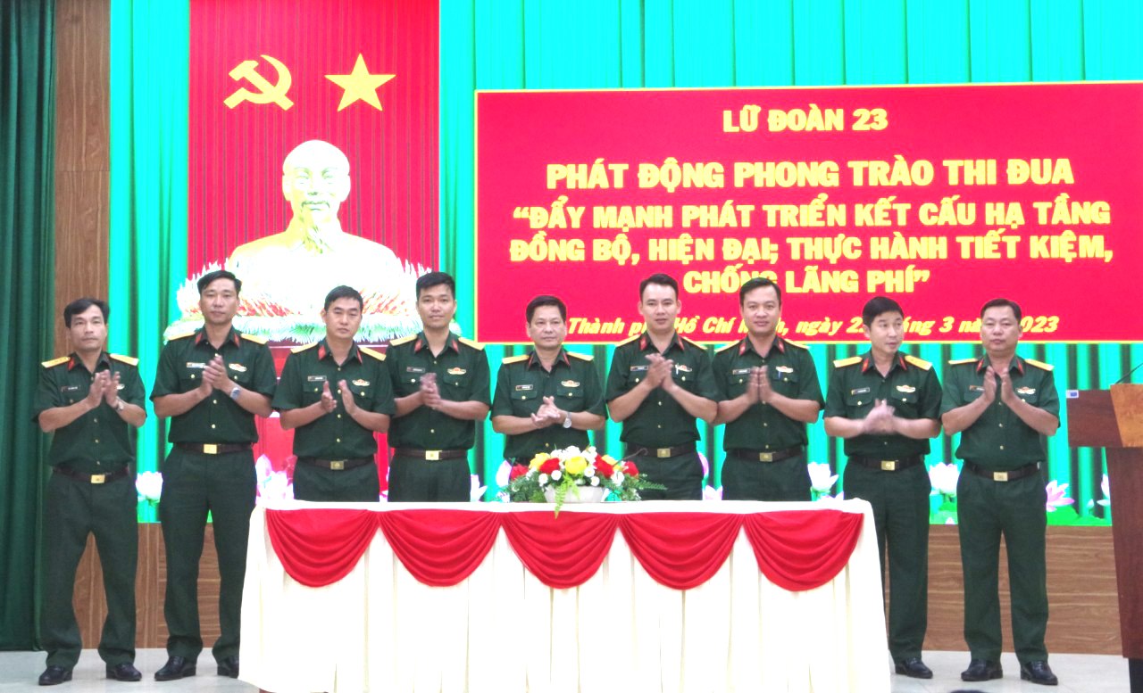 (QK7 Online) - Ngày 23/3, Lữ đoàn 23 tổ chức phát động phong trào thi đua "Đẩy mạnh phát triển kết cấu hạ tầng đồng bộ, hiện đại; thực hành tiết kiệm chống lãng phí" trong toàn lữ đoàn.