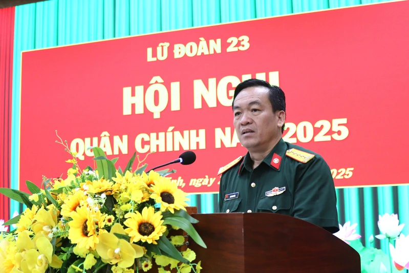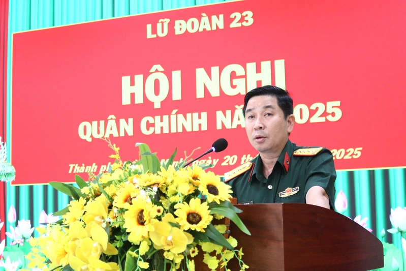 (QK7 Online) - Sáng 20/11, Lữ đoàn 23 tổ chức hội nghị Quân chính năm 2025. Đại tá Vũ Minh Đức, Lữ đoàn trưởng Lữ đoàn chủ trì hội nghị. Đại tá Đinh Nam Đàn, Chính ủy Lữ đoàn; Thượng tá Chu Văn Hưng, Phó Chủ nhiệm Thông tin Quân khu dự hội nghị.