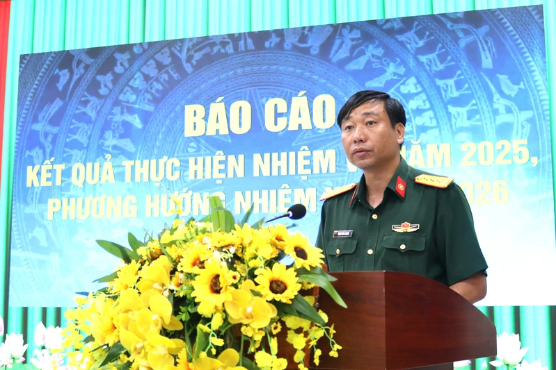 Thượng tá Trịnh Đăng Chung, Phó Lữ đoàn trưởng, Tham mưu trưởng Lữ đoàn báo cáo kết quả thực hiện nhiệm vụ năm 2025.