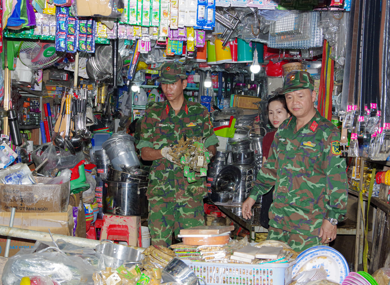 Các chiến sĩ vệ sinh tại Trường học Trung học phổ thông Cát Tiên.