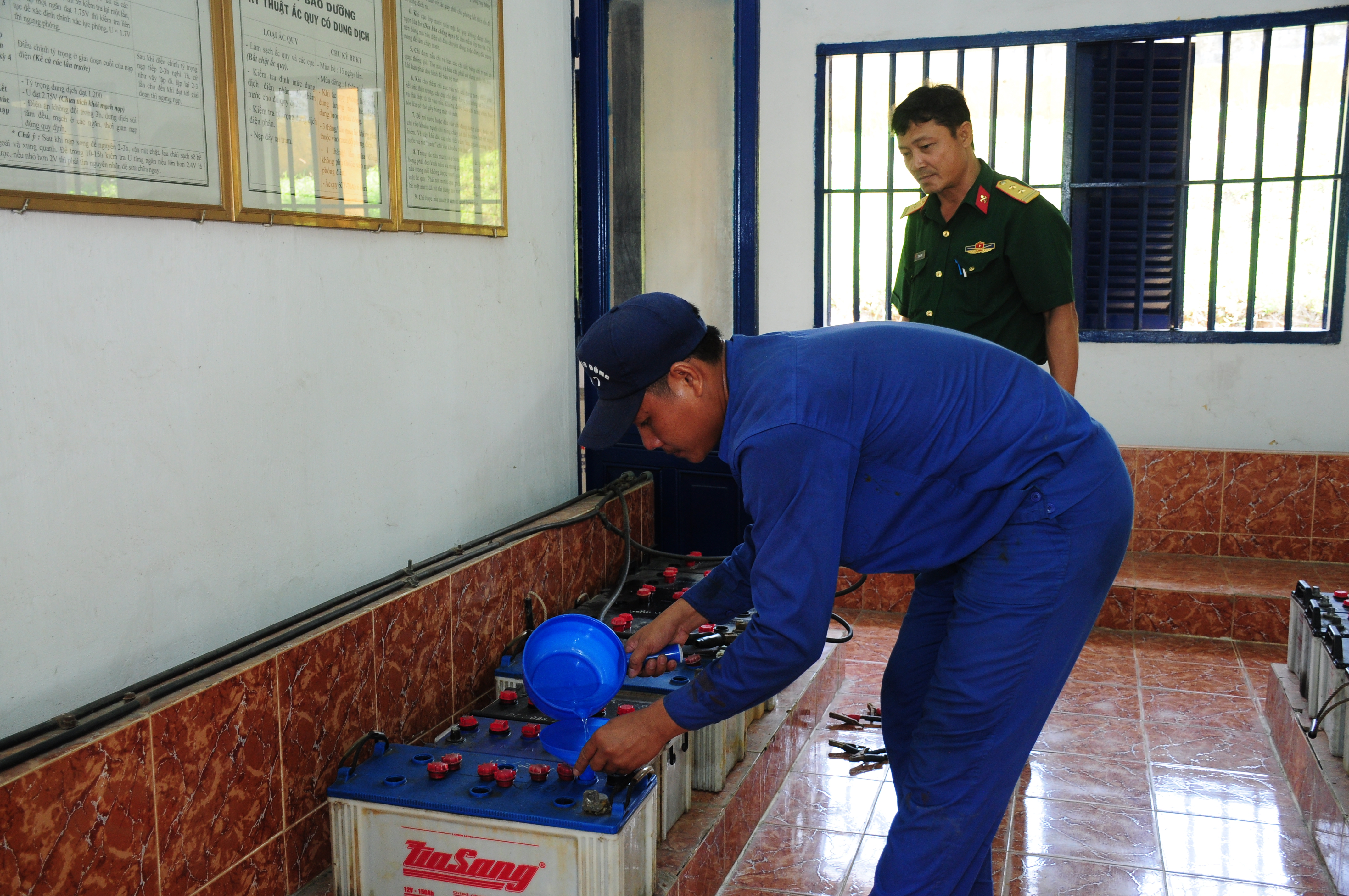 Trung tá Cù Ngọc Đạo, Chủ nhiệm kỹ thuật Lữ đoàn 25 kiểm tra Trạm nạp bình điện