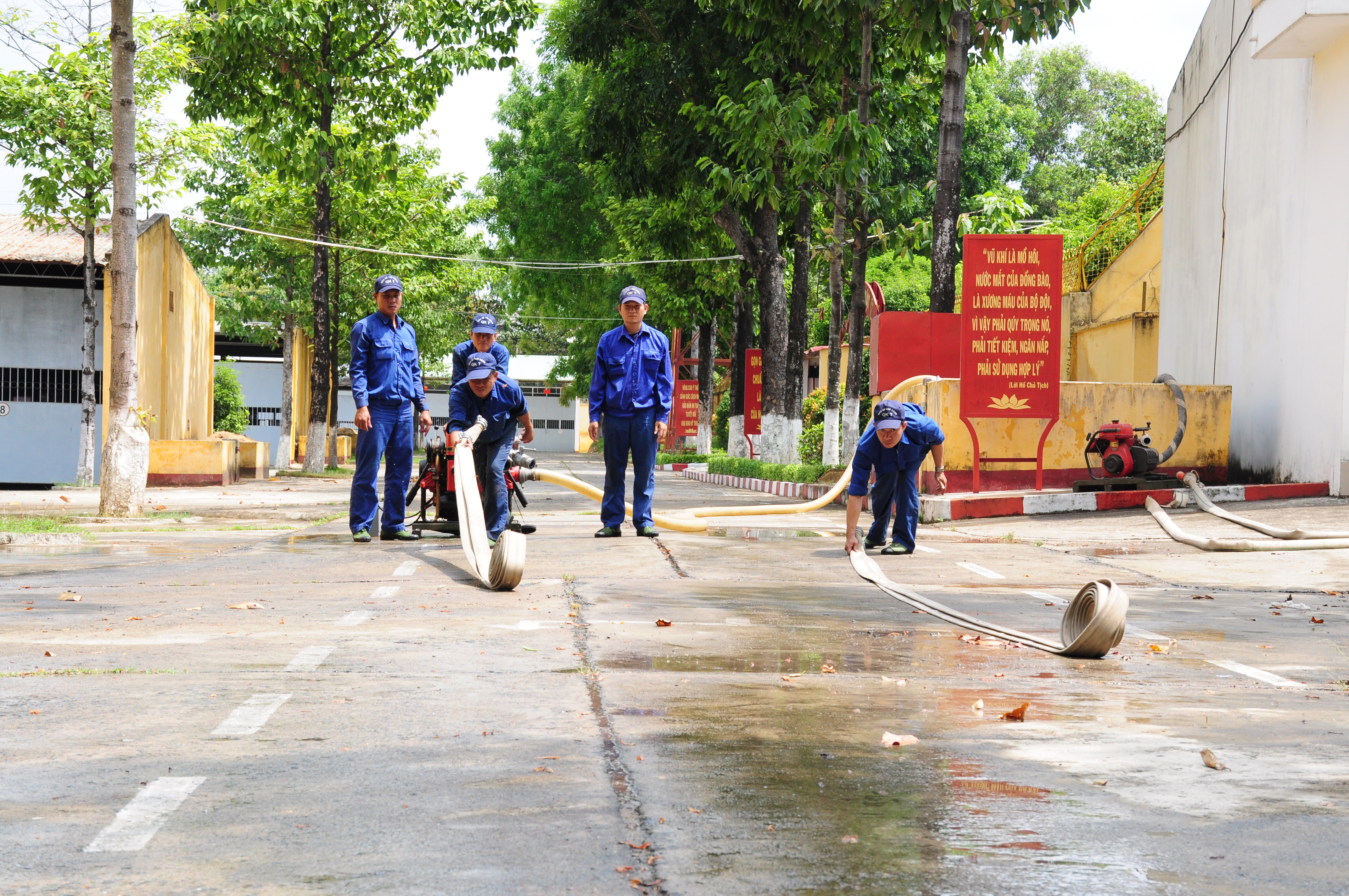 Thường xuyên luyện tập các phương án phòng chống cháy nổ ở Khu kỹ thuật Lữ đoàn