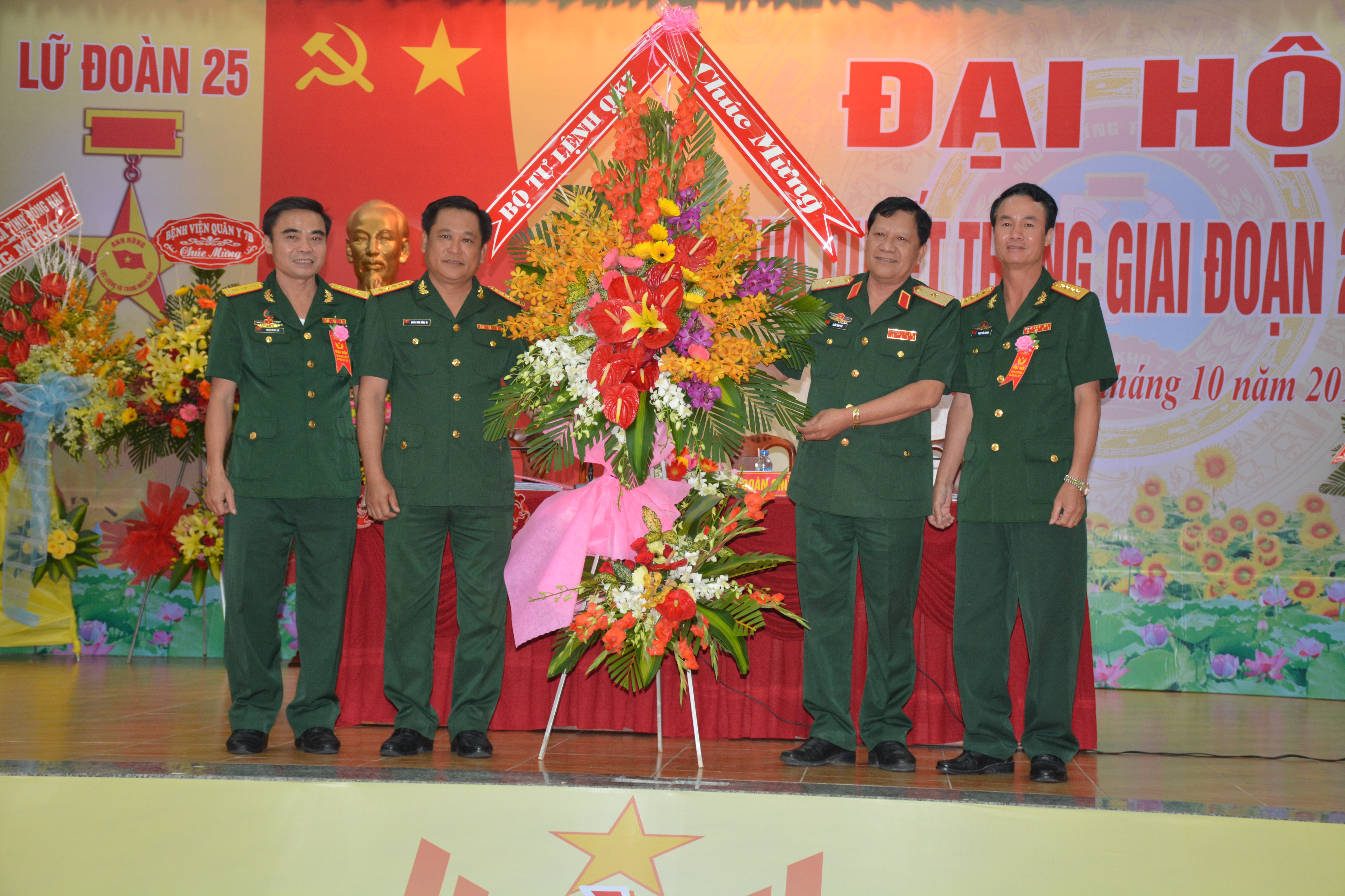 Thay mặt Bộ Tư lệnh Quân khu 7, Thiếu tướng Trần Hữu Tài tặng hoa chúc mừng đại hội Lữ đoàn 25