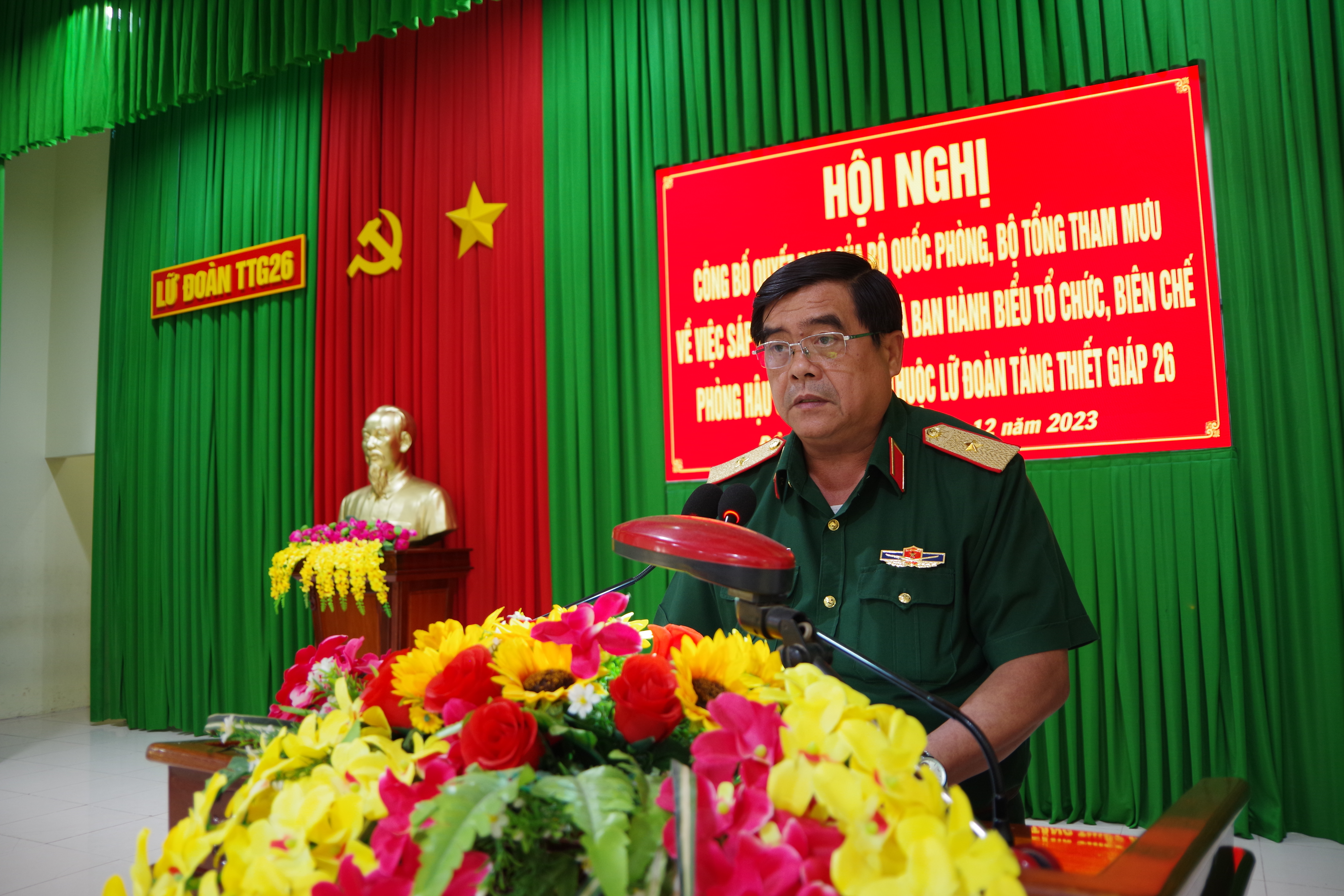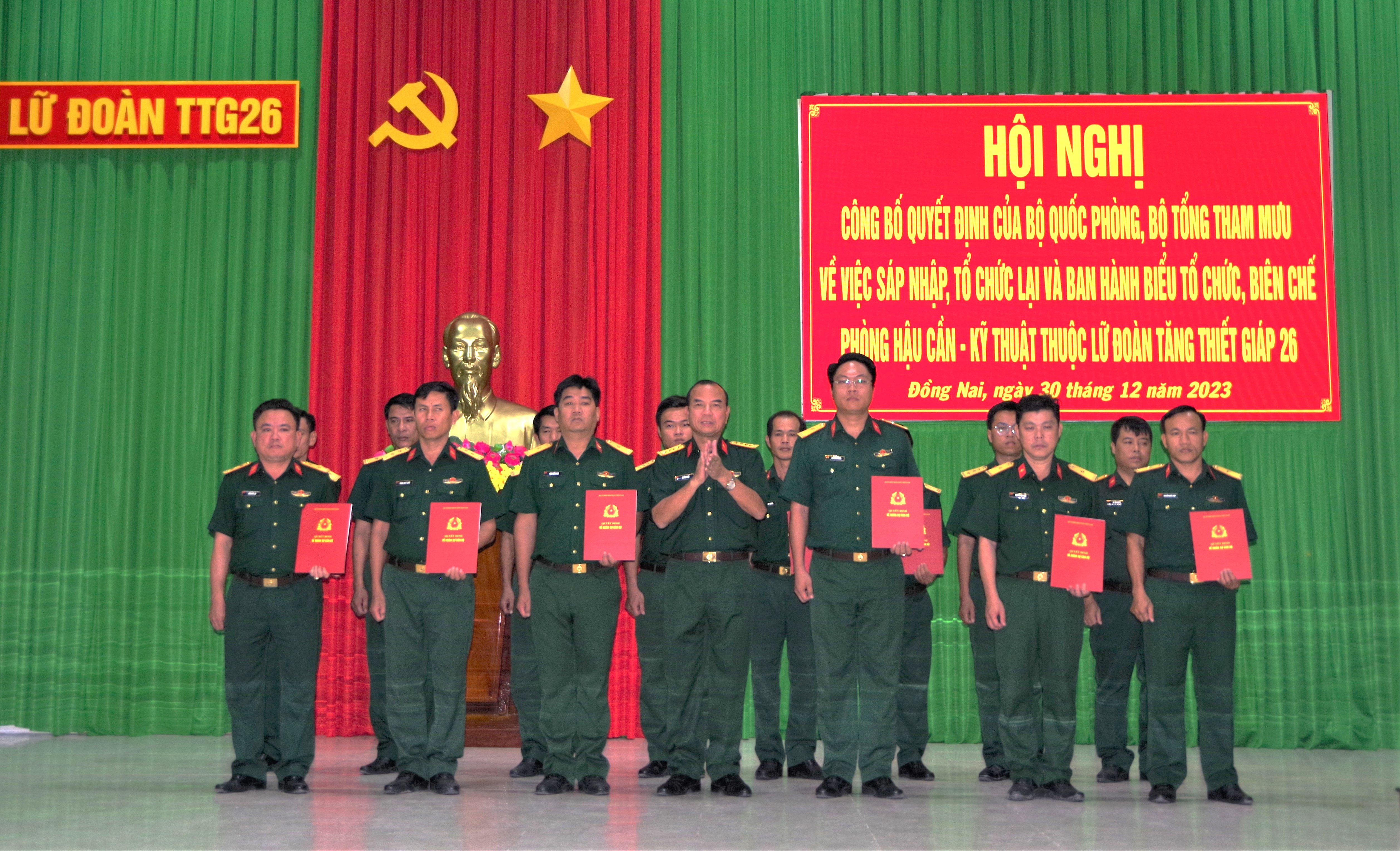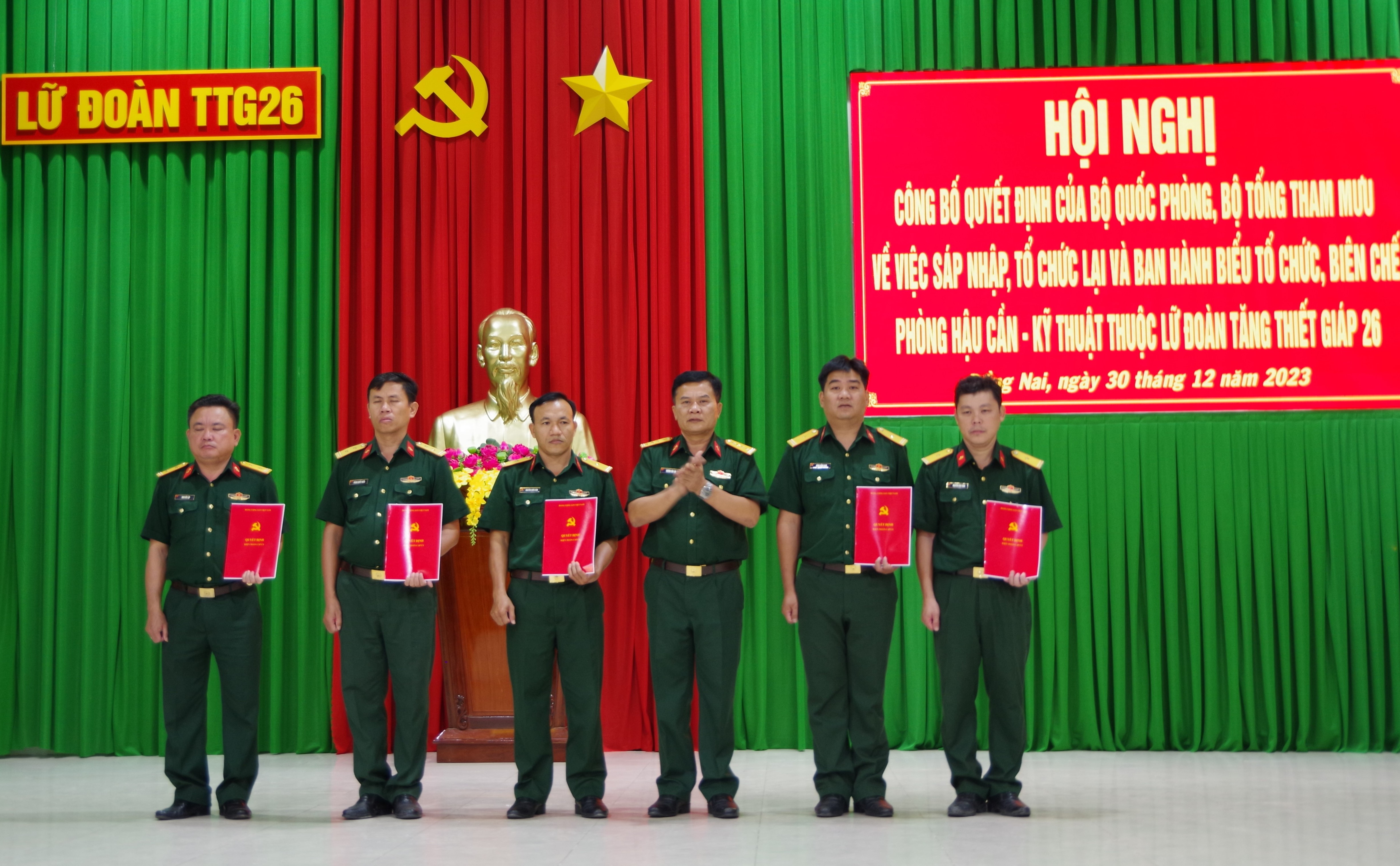 Đại tá Trương Văn Lan, Bí thư Đảng ủy, Chính ủy Lữ đoàn trao quyết định kiện toàn cấp ủy Chi bộ Phòng Hậu cần – Kỹ thuật.