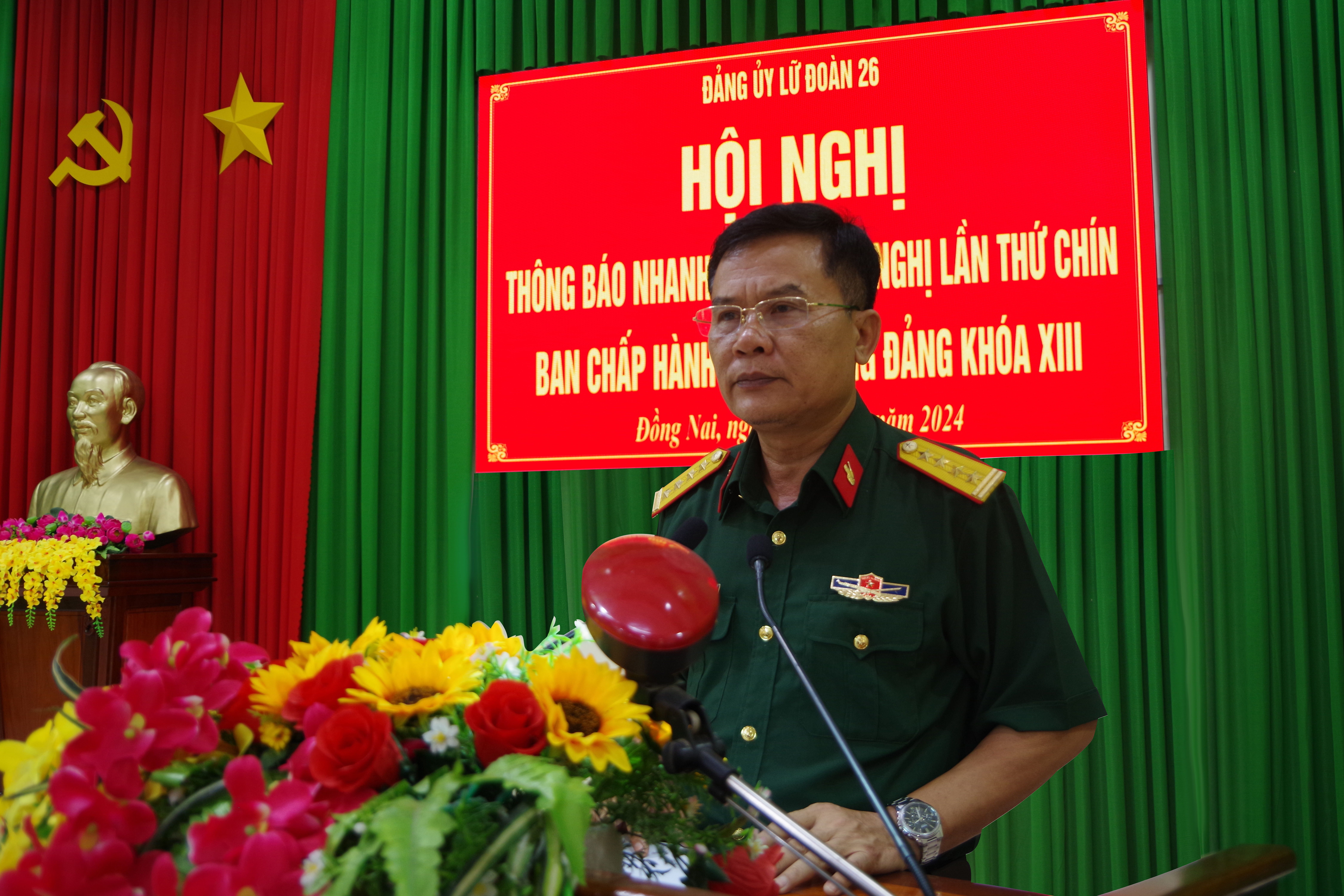 Đại tá Trương Văn Lan, Bí thư Đảng ủy, Chính ủy Lữ đoàn thông báo nhanh kết quả Hội nghị Trung ương 9, khóa XIII.
