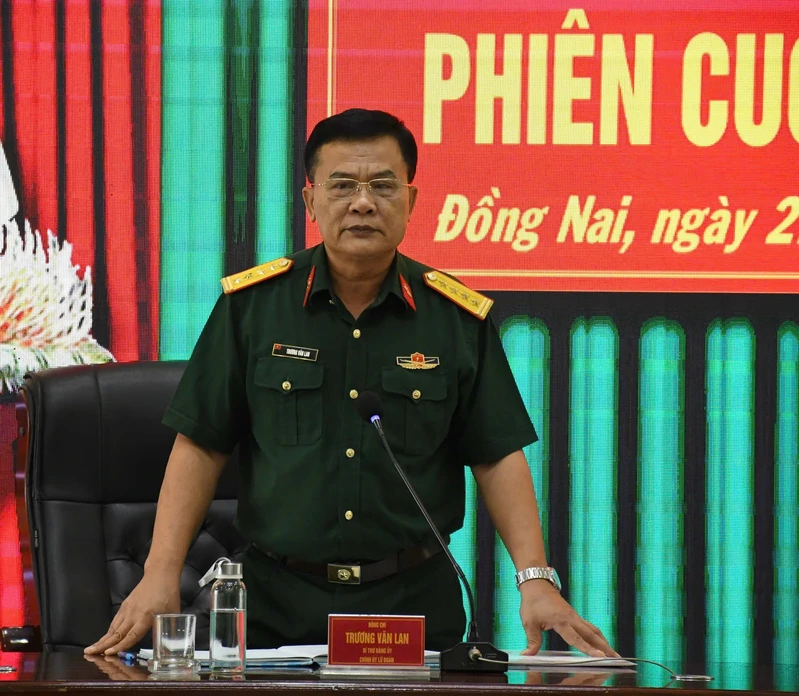 Đại tá Trương Văn Lan, Bí thư Đảng uỷ, Chính uỷ Lữ đoàn 26 chủ trì hội nghị.