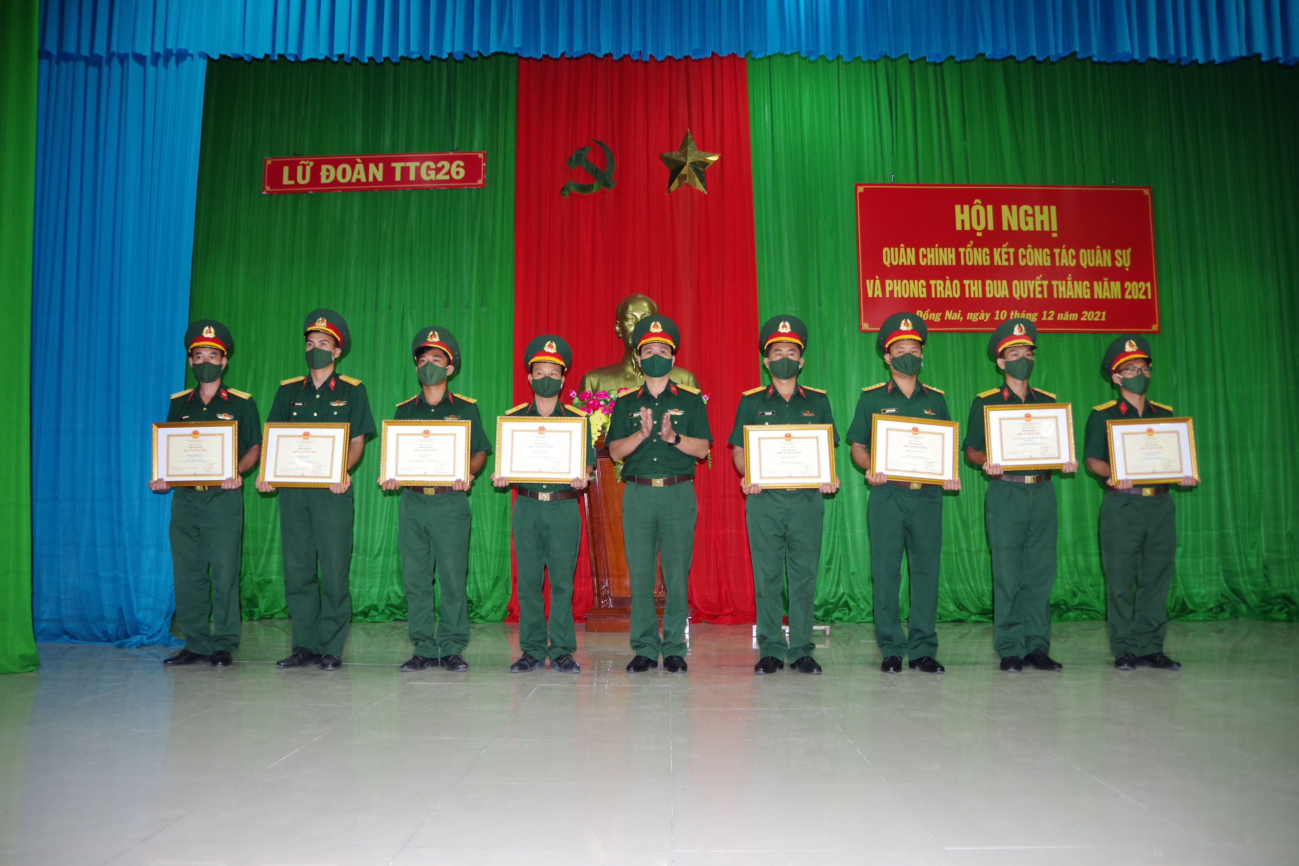 Thủ trưởng Lữ đoàn 26 trao thưởng cho các tập thể, cá nhân hoàn thành xuất sắc nhiệm vụ năm 2021.