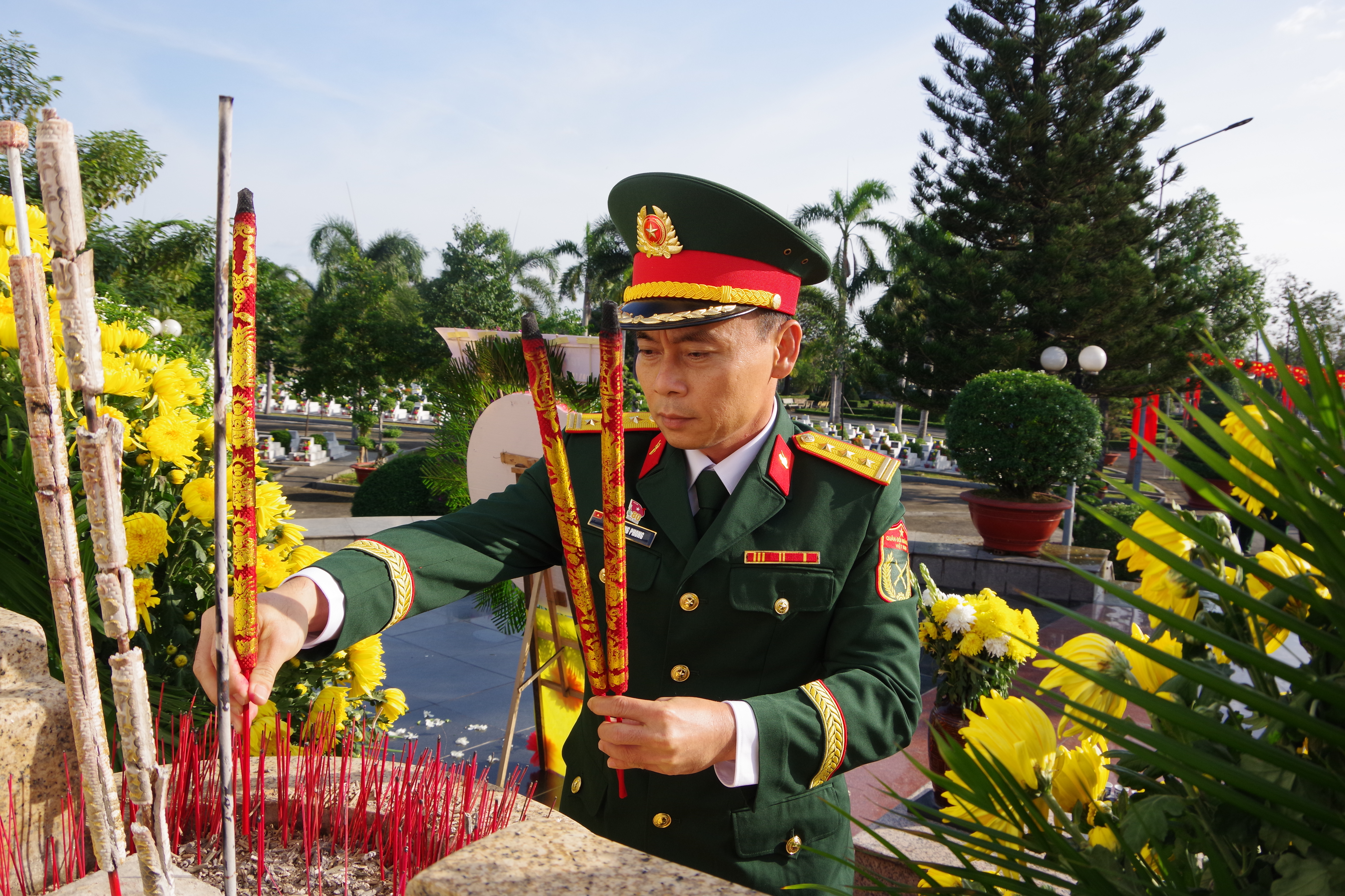 Cán bộ, chiến sĩ Lữ đoàn 26 thắp hương trên từng phần mộ liệt sĩ.