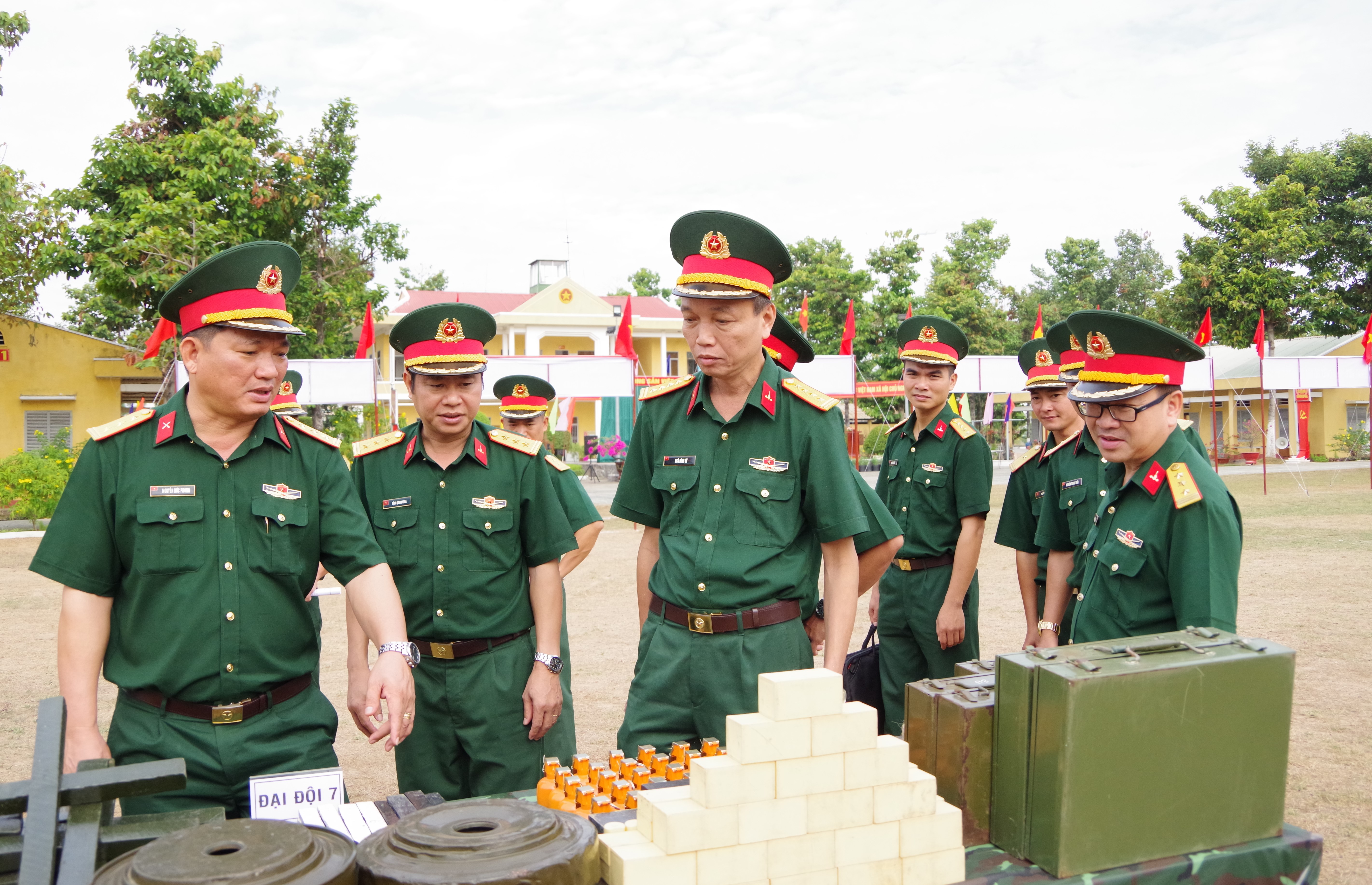 Thủ trưởng Lữ đoàn 77 kiểm tra mô hình học cụ huấn luyện của đơn vị.