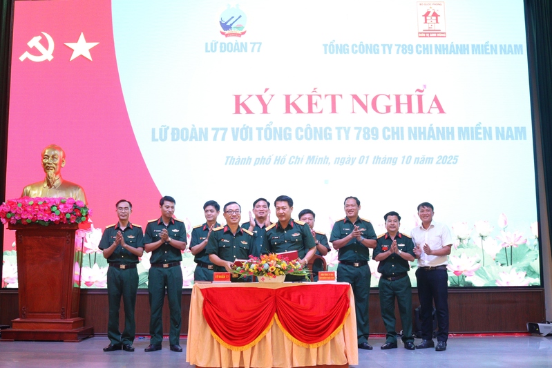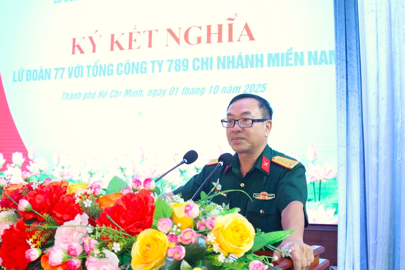Phát biểu tại buổi lễ, Đại tá Lương Khắc Quang, Chính ủy Lữ đoàn 77 nhấn mạnh, việc ký kết giữa Lữ đoàn 77 và Công ty 789 Chi nhánh miền Nam là sự kiện có ý nghĩa quan trọng, phát huy tiềm năng, thế mạnh từng đơn vị; đánh dấu bước phát triển mới trong mối quan hệ hợp tác và đoàn kết giữa hai đơn vị. Đồng chí tin tưởng rằng, việc kết nghĩa không chỉ là sự hỗ trợ về mặt tinh thần mà còn tạo tiền đề vững chắc để hai bên phát huy sức mạnh tổng hợp, hỗ trợ lẫn nhau, xây dựng mối quan hệ bền chặt, hiệu quả, góp phần hoàn thành xuất sắc mọi nhiệm vụ chính trị.