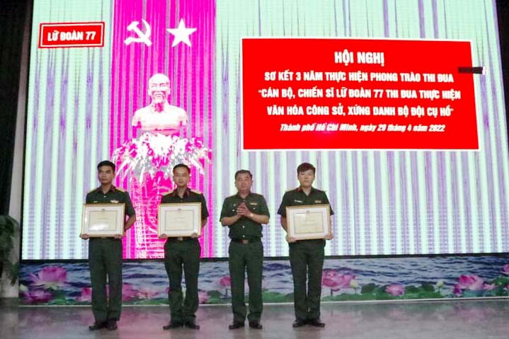 Dịp này, lữ đoàn khen thưởng cho 3 tập thể và 10 cá nhân có thành tích tiêu biểu trong thực hiện phong trào thi đua.