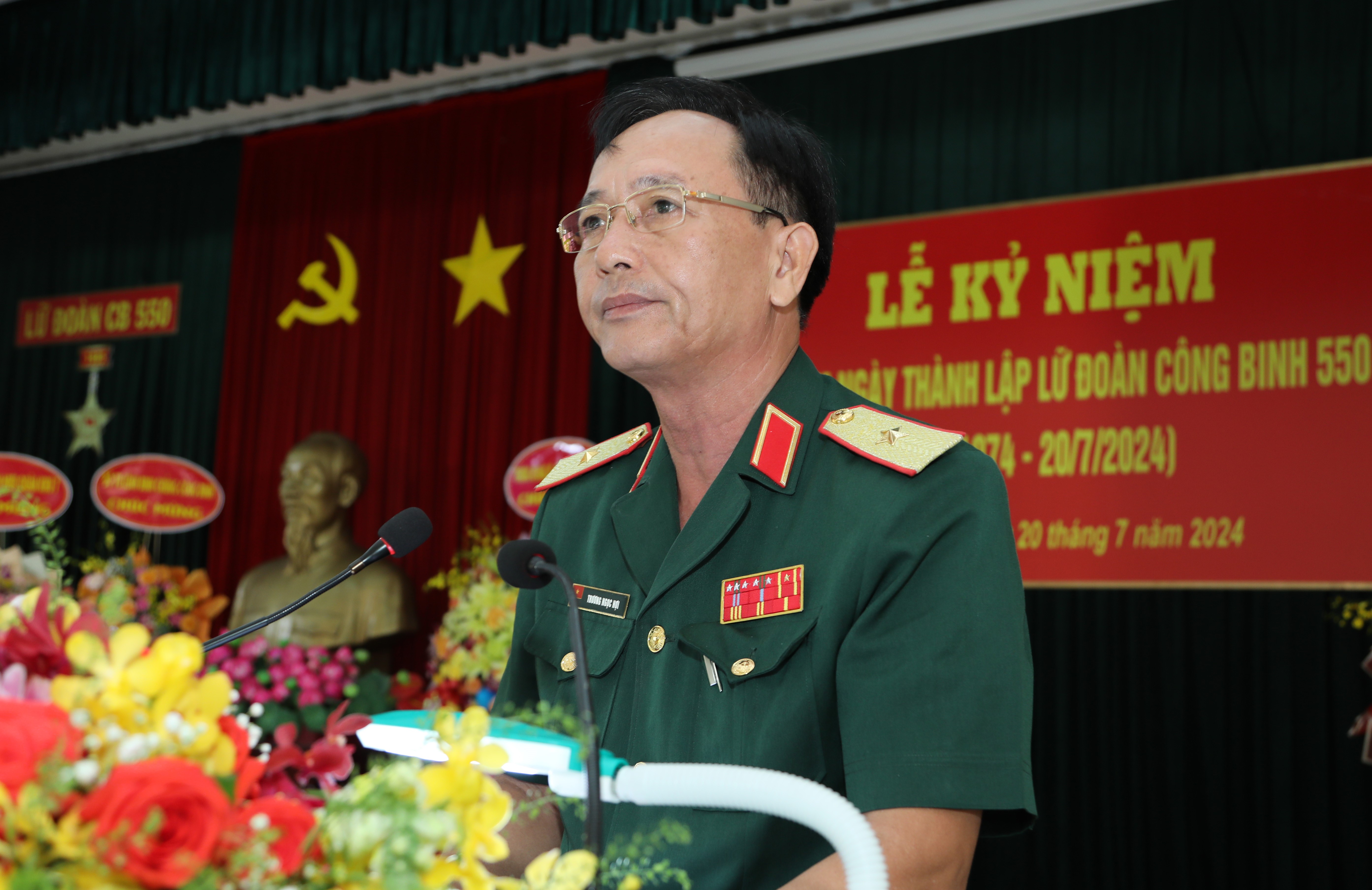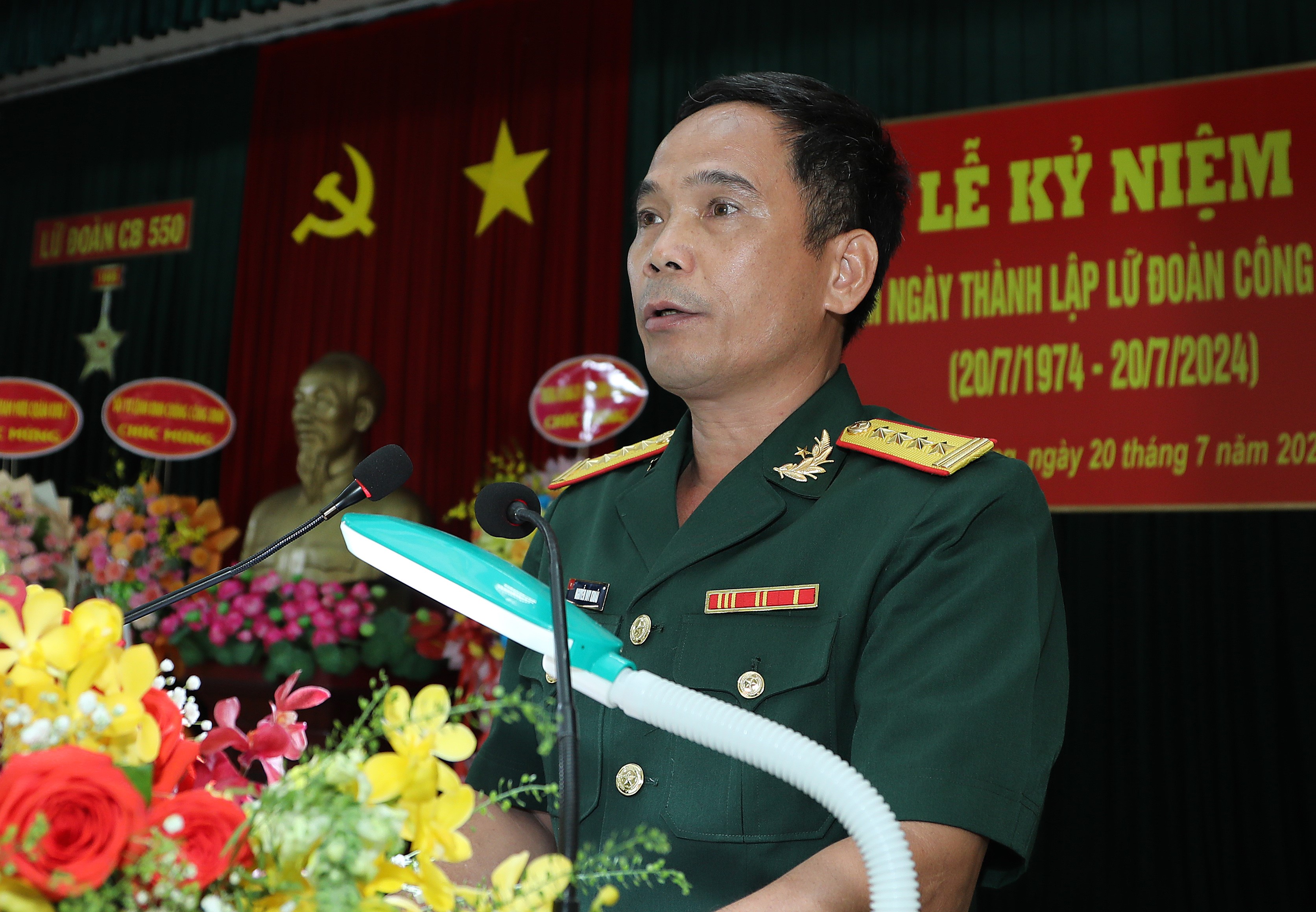 (QK7 Online) - Ngày 20/7, tại tỉnh Bình Dương, Lữ đoàn Công binh 550 (Quân đoàn 4) tổ chức Lễ kỷ niệm 50 năm Ngày thành lập (20-7-1974/20-7-2024), Thiếu tướng Trương Ngọc Hợi, Chính ủy Quân đoàn 4 dự, phát biểu chỉ đạo.