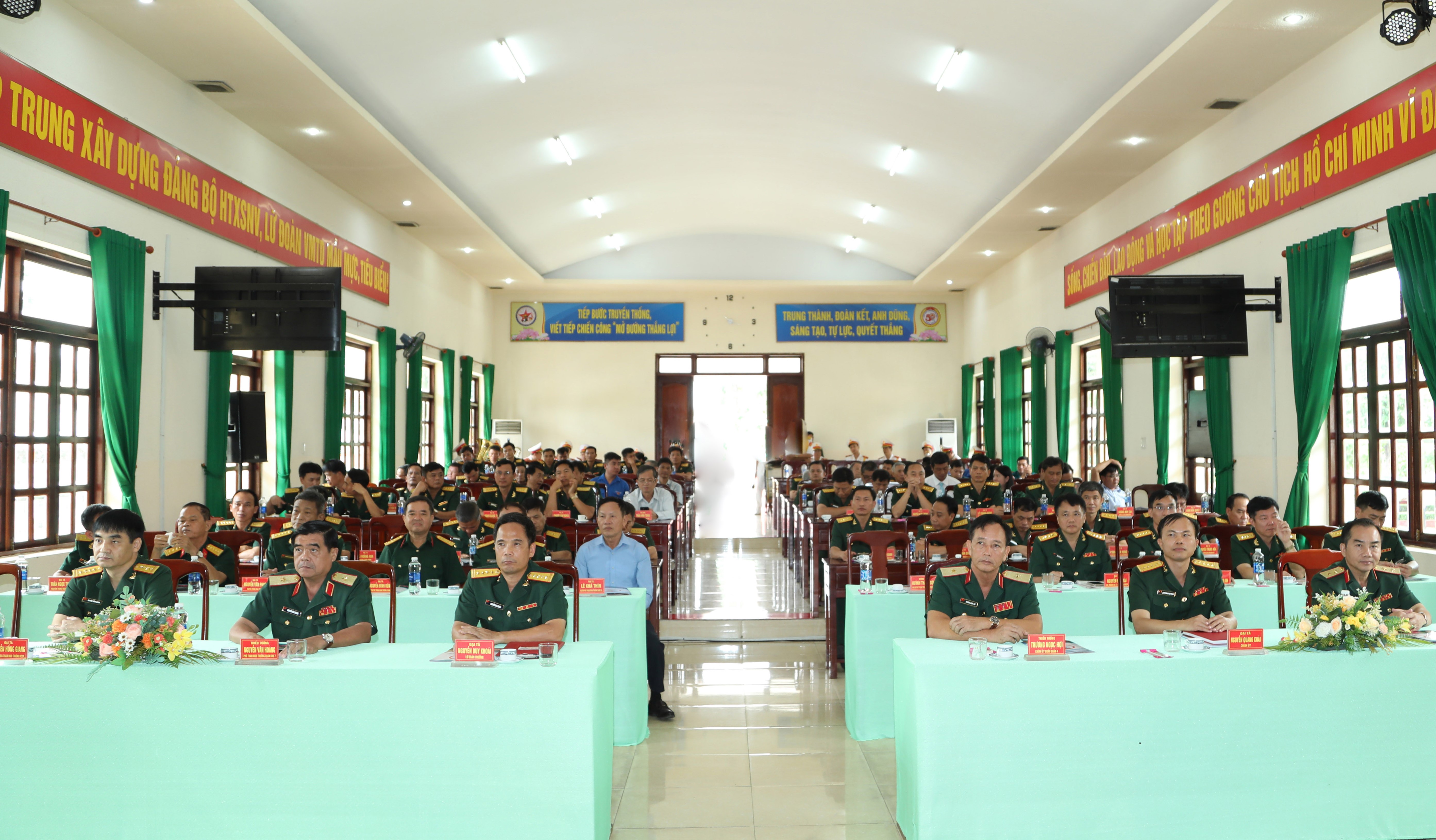 Các đại biểu dự buổi lễ. Đại tá Nguyễn Duy Khoái, Lữ đoàn trưởng trình bày diễn văn ôn lại truyền thống đơn vị.