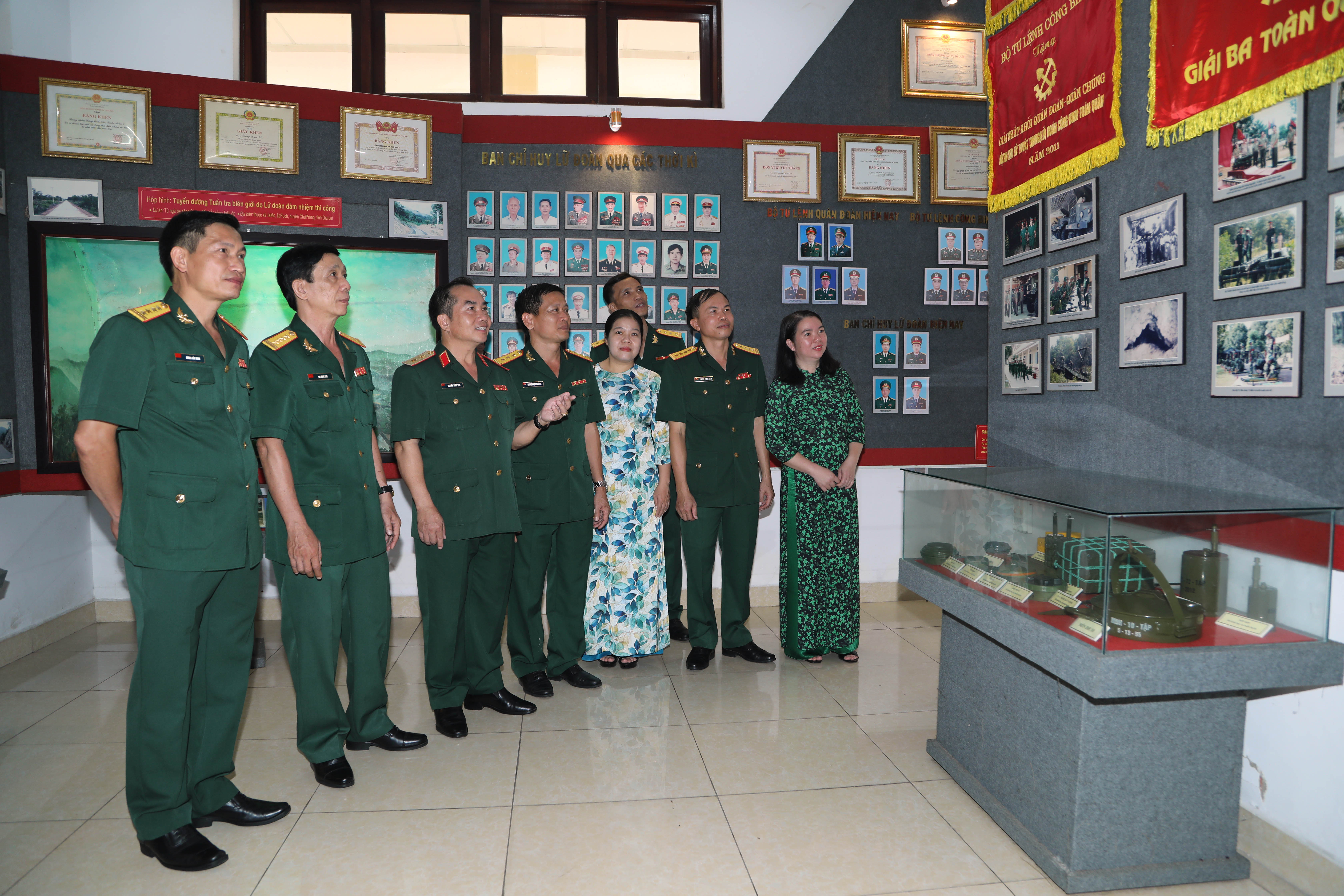 Các đại biểu và cán bộ, chiến sĩ Lữ đoàn 550 tham quan nhà truyền thống đơn vị.