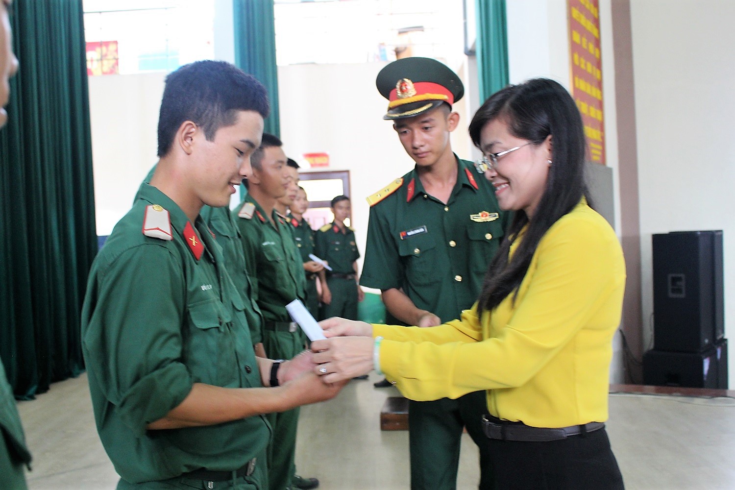 Dịp này, lãnh đạo Huyện ủy, HĐND, UBND, Ủy ban MTTQ Việt Nam huyện thăm hỏi, động viên và tặng quà (300 ngàn đồng/chiến sĩ) cho 150 chiến sĩ mới của huyện đang rèn luyện, công tác tại Lữ đoàn Pháo binh 96.