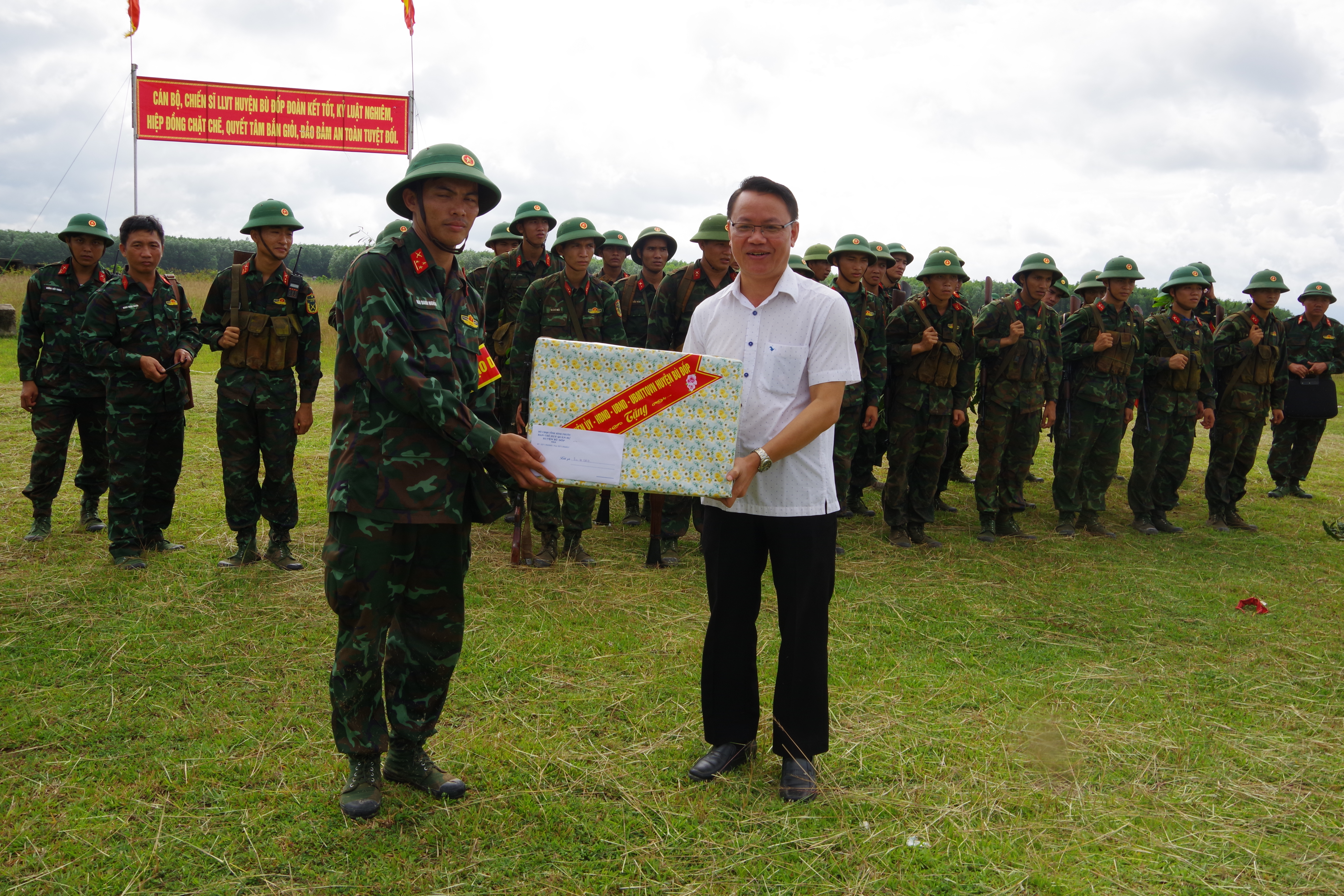 Lãnh đạo địa phương đến tham quan diễn tập và tặng quà động viên cán bộ, chiến sĩ.