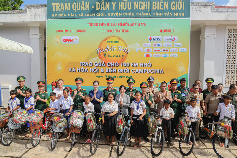 (QK7 Online) - Sáng ngày 21/9, tại tỉnh Tây Ninh, Trung tâm Phát thanh – Truyền hình Quân đội phối hợp cùng các cơ quan, đơn vị và nhà tài trợ đã tổ chức tặng quà 100 em nhỏ, trong đó có 60 em là con em người Campuchia sinh sống tại vùng biên Đôn, huyện Romeas Heak, tỉnh SvayRieng, Campuchia.