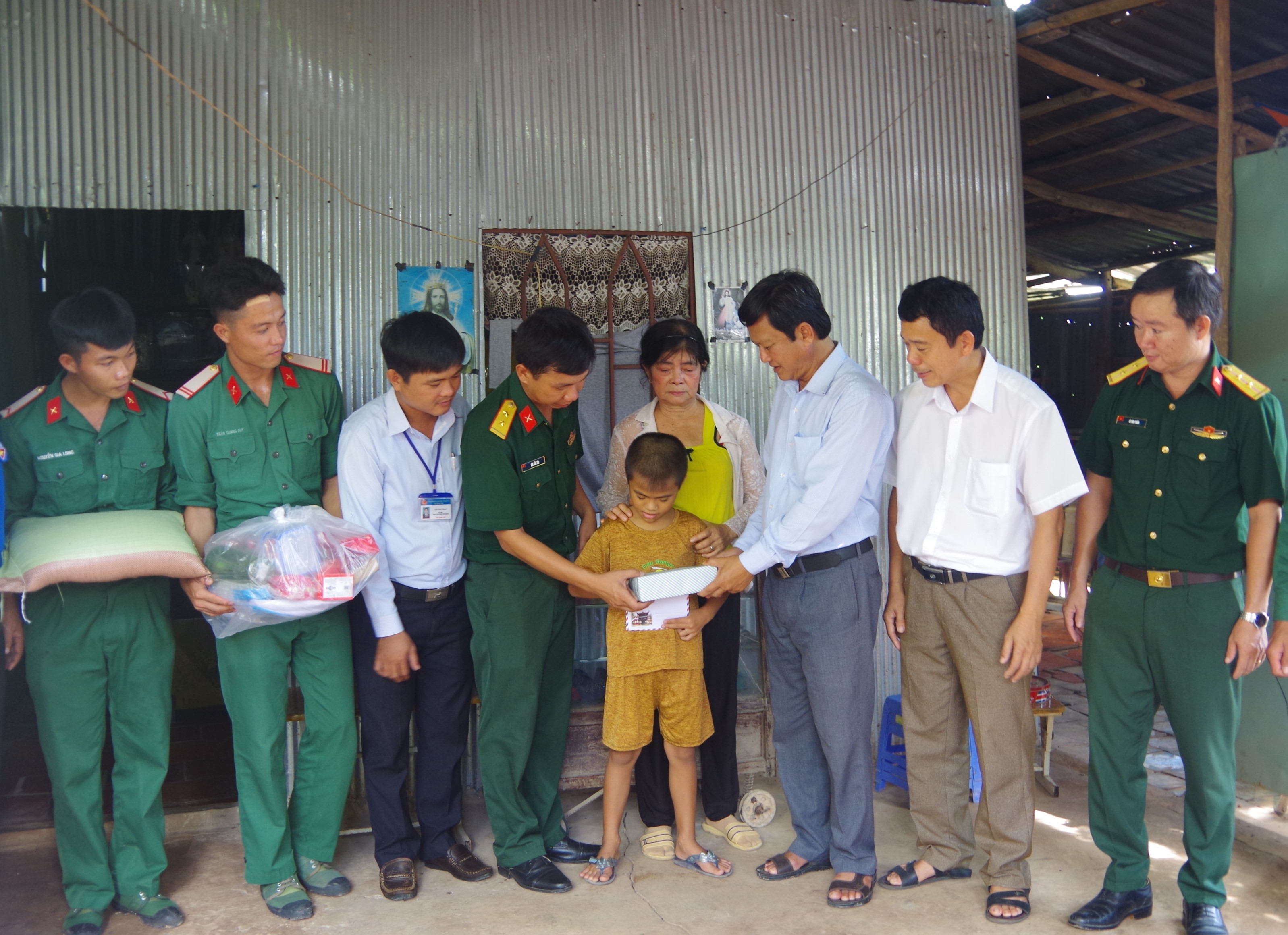 Hoàn cảnh em Huỳnh Ngọc Nhi, ấp Kinh Củ, xã Hưng Điền B thuộc diện hộ nghèo của xã cũng được chi đoàn đơn vị nhận đỡ đầu để em có điều kiện tốt bước vào năm học mới. Nâng niu món quà năm học mới của các chú bộ đội tặng em Huỳnh Ngọc Nhi nói: Các chú bộ đội tặng quà con vui lắm, con sẽ có áo mới để đi học, phụ với mẹ mua gạo.