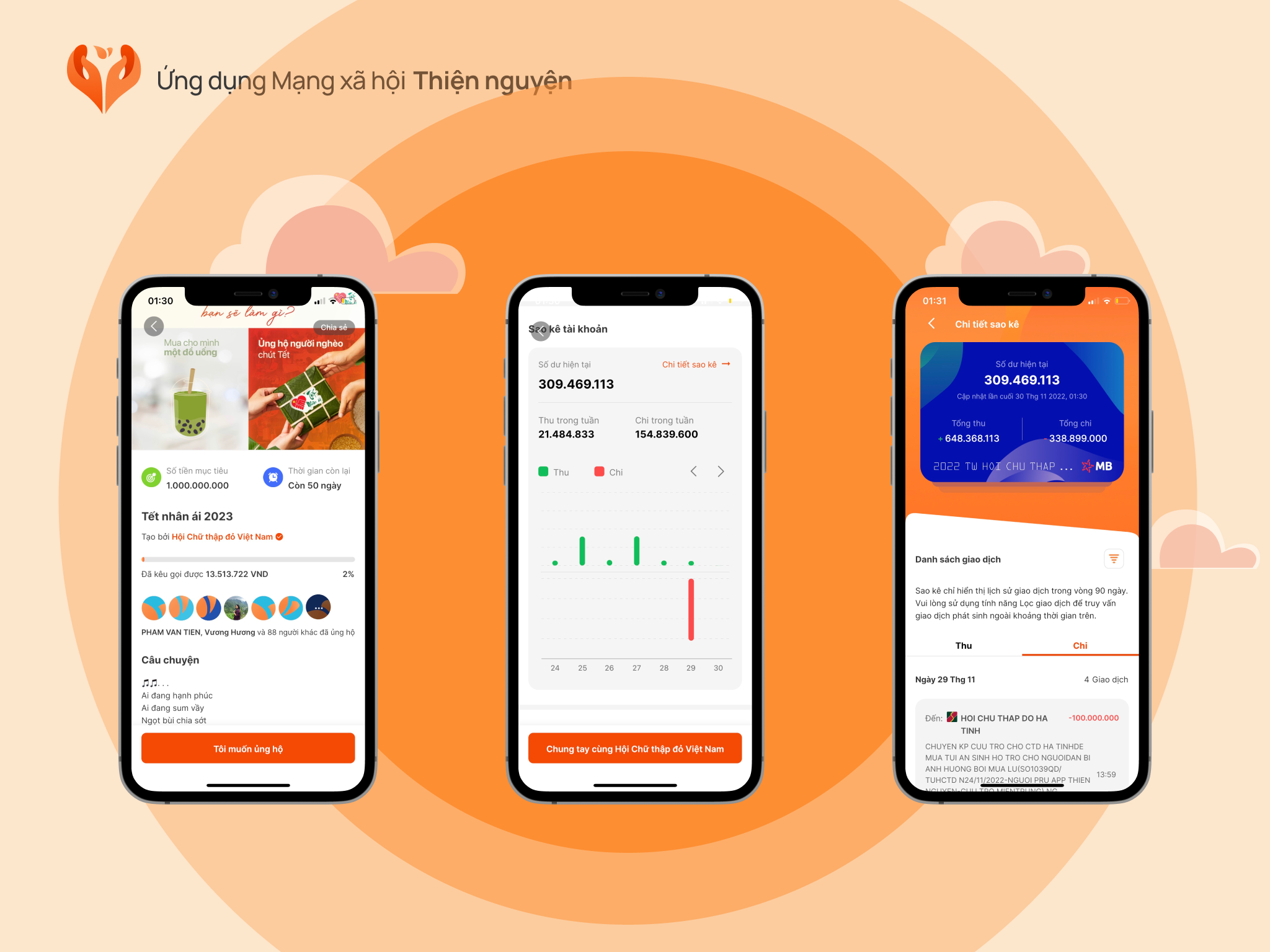 Với ứng dụng mạng xã hội thiện nguyện (App thiện nguyện), các tổ chức, cá nhân vận động có thể thiết kế, chia sẻ mục tiêu gây quỹ, nhận hoặc chia sẻ báo cáo thu chi tự động 24/7 mọi số tiền nhận ủng hộ và chi hỗ trợ; còn những nhà hảo tâm có thể chuyển tiền trực tiếp đến tài khoản của các chiến dịch mình quan tâm, cũng như theo dõi, giám sát tài chính thuận tiện, dễ dàng.