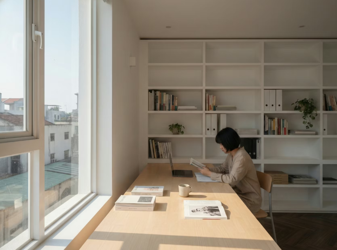 Ánh sáng trong ngôi nhà này không chỉ là để nhìn thấy, mà là để cảm nhận. Các kiến trúc sư đã tính toán kỹ lưỡng góc độ: