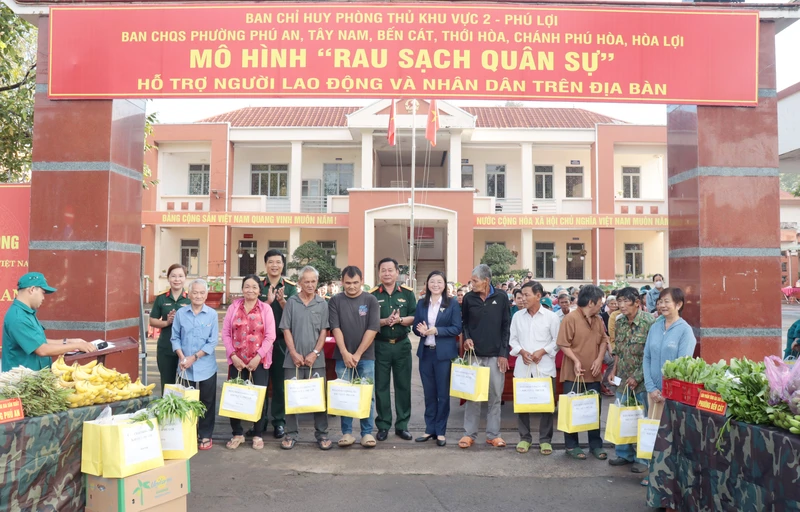 (QK7 Online) - Ngày 31/10, Ban chỉ huy Phòng thủ khu vực 2 - Phú Lợi phối hợp UBND các phường Phú An, Tây Nam, Bến Cát, Thới Hòa, Chánh Phú Hòa và Hòa Lợi, Thành phố Hồ Chí Minh tổ chức mô hình “Rau sạch quân sự”. Đến dự có Thượng tá Nguyễn Phương Khánh, Phó Chỉ huy trưởng; Thượng tá Hoàng Việt Anh, Phó Chính ủy Ban chỉ huy Phòng thủ khu vực 2 – Phú Lợi và đồng chí Nguyễn Thị Hà, Chủ tịch UBMTTQ Việt Nam phường Phú An.