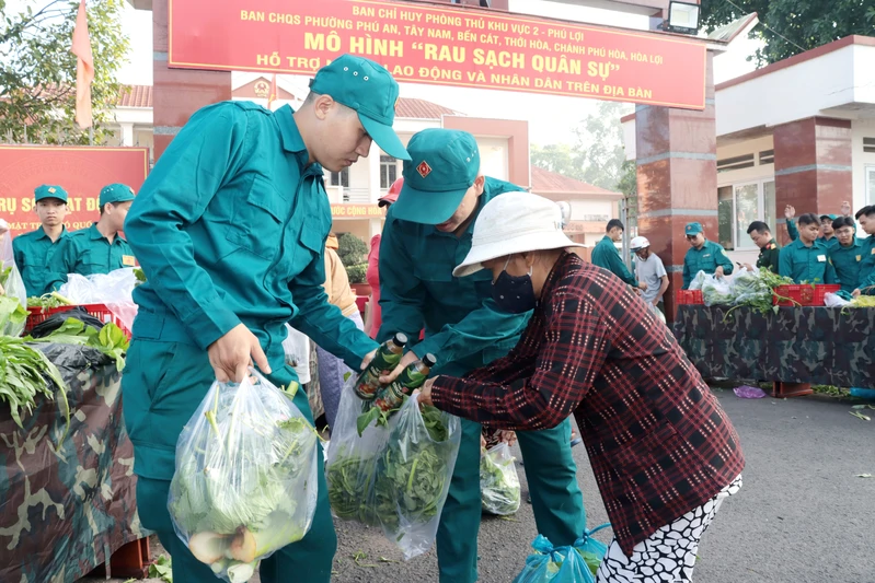 Trong chương trình, cán bộ, chiến sĩ các đơn vị trao tặng 700 kg rau, củ, quả, cá các loại từ nguồn tăng gia sản xuất và vận động Công ty cổ phần nông nghiệp U&I (Unifram) hỗ trợ; Hội Phụ nữ Phòng thủ Khu vực 2 vận động 50 thùng nước ngọt hỗ trợ người lao động và Nhân dân trên địa bàn. Hoạt động lan tỏa tinh thần đoàn kết, nghĩa tình quân - dân, thể hiện trách nhiệm của Quân đội với Nhân dân có hoàn cảnh khó khăn trên địa bàn.