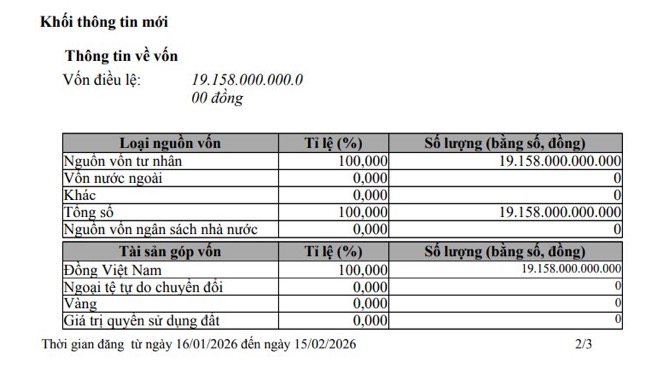 CTCP Đầu tư Địa ốc Đại Quang Minh vừa chính thức nâng vốn điều lệ lên 19.158 tỷ đồng vào ngày 16/1, đánh dấu bước mở rộng quy mô tài chính mạnh mẽ ngay từ đầu năm.