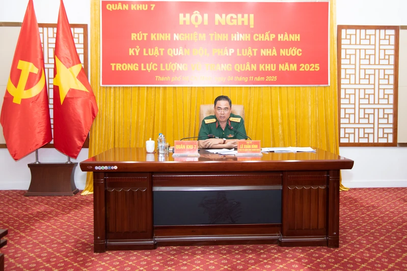 (QK7 Online) – Chiều 4 tháng 11, Bộ Tư lệnh Quân khu tổ chức hội nghị rút kinh nghiệm tình hình chấp hành kỷ luật Quân đội, pháp luật Nhà nước trong lực lượng vũ trang Quân khu năm 2025 bằng hình thức trực tiếp và trực tuyến tại 13 điểm cầu. Đại tá Lê Xuân Bình, Phó Tư lệnh – Tham mưu trưởng Quân khu chủ trì hội nghị.