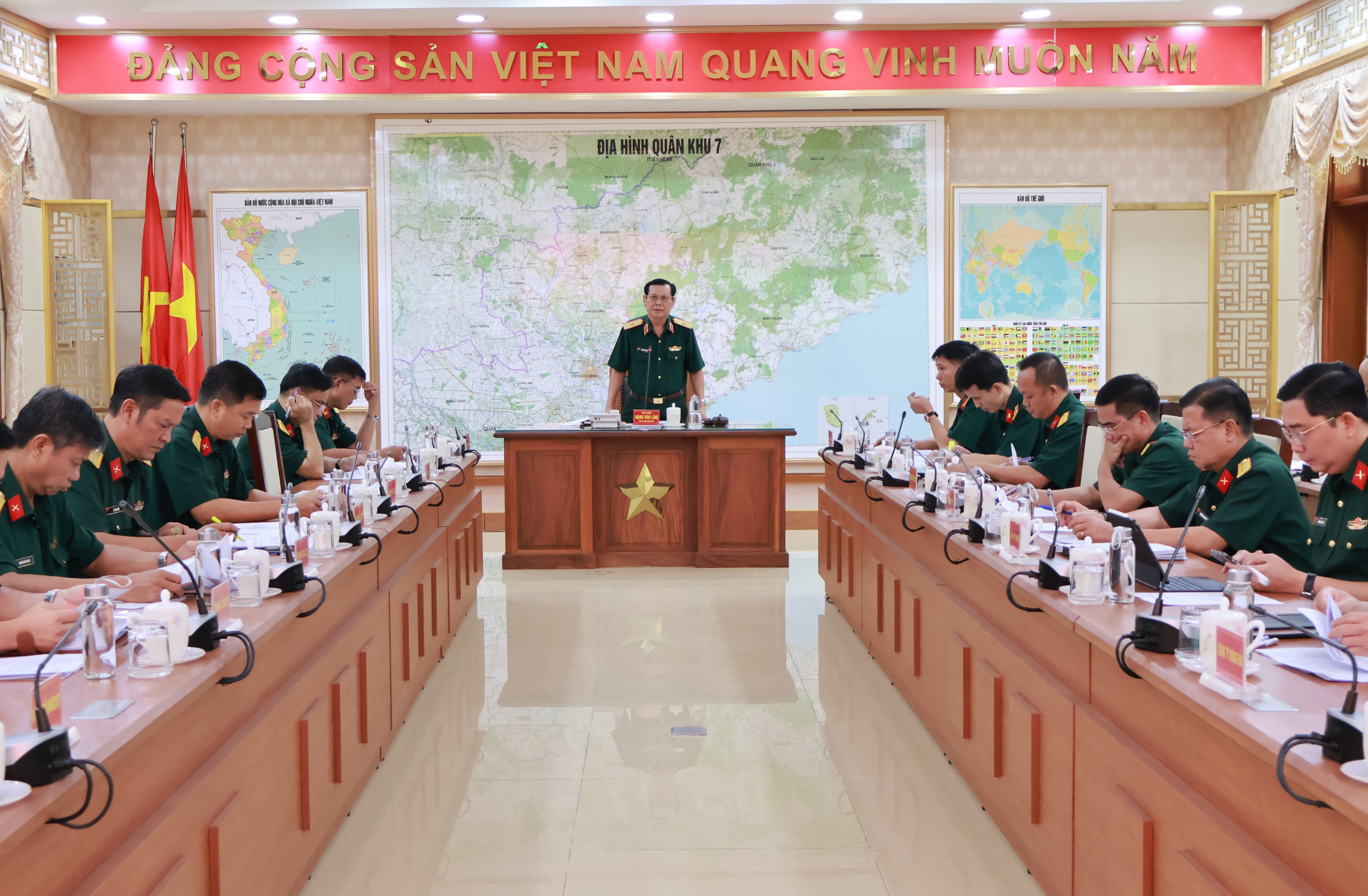 Thiếu tướng Đặng Văn Lẫm, Phó Tư lệnh Quân khu 7 chủ trì hội nghị.