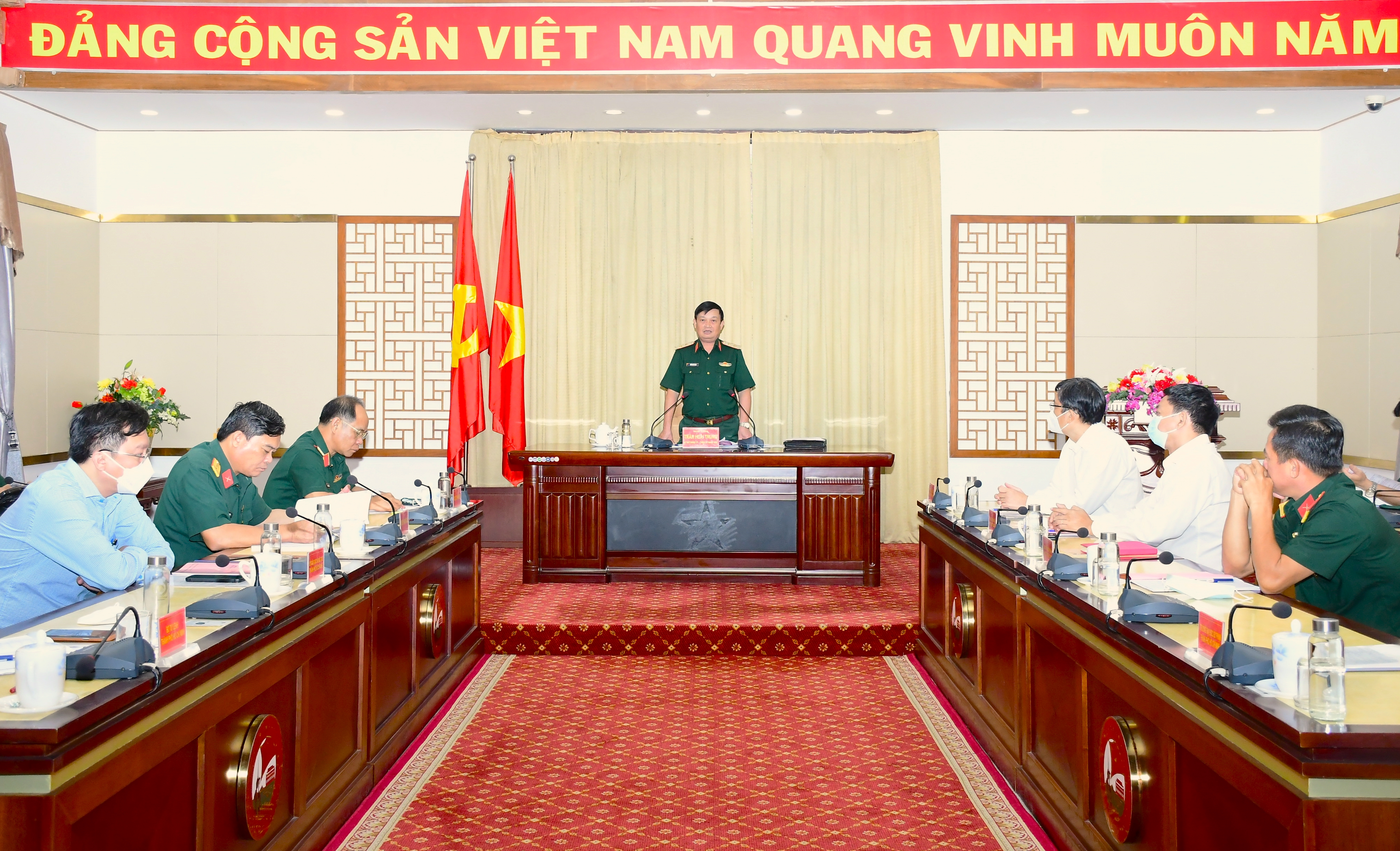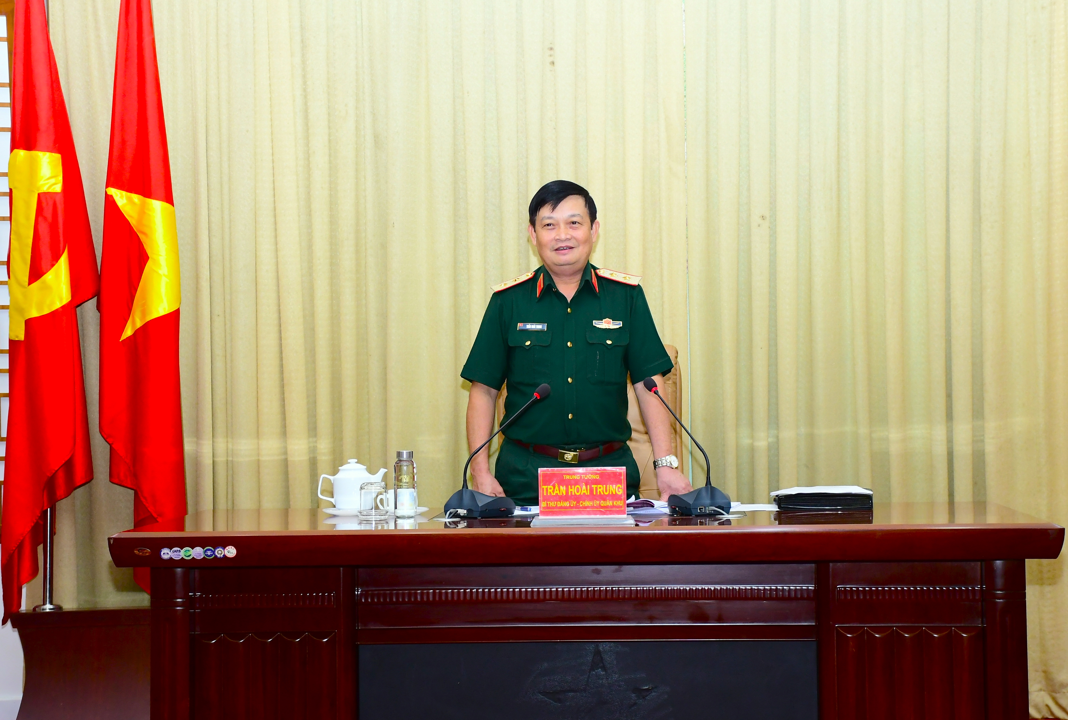 Trung tướng Trần Hoài Trung, Bí thư Đảng ủy, Chính ủy Quân khu điều hành hội nghị thảo luận.