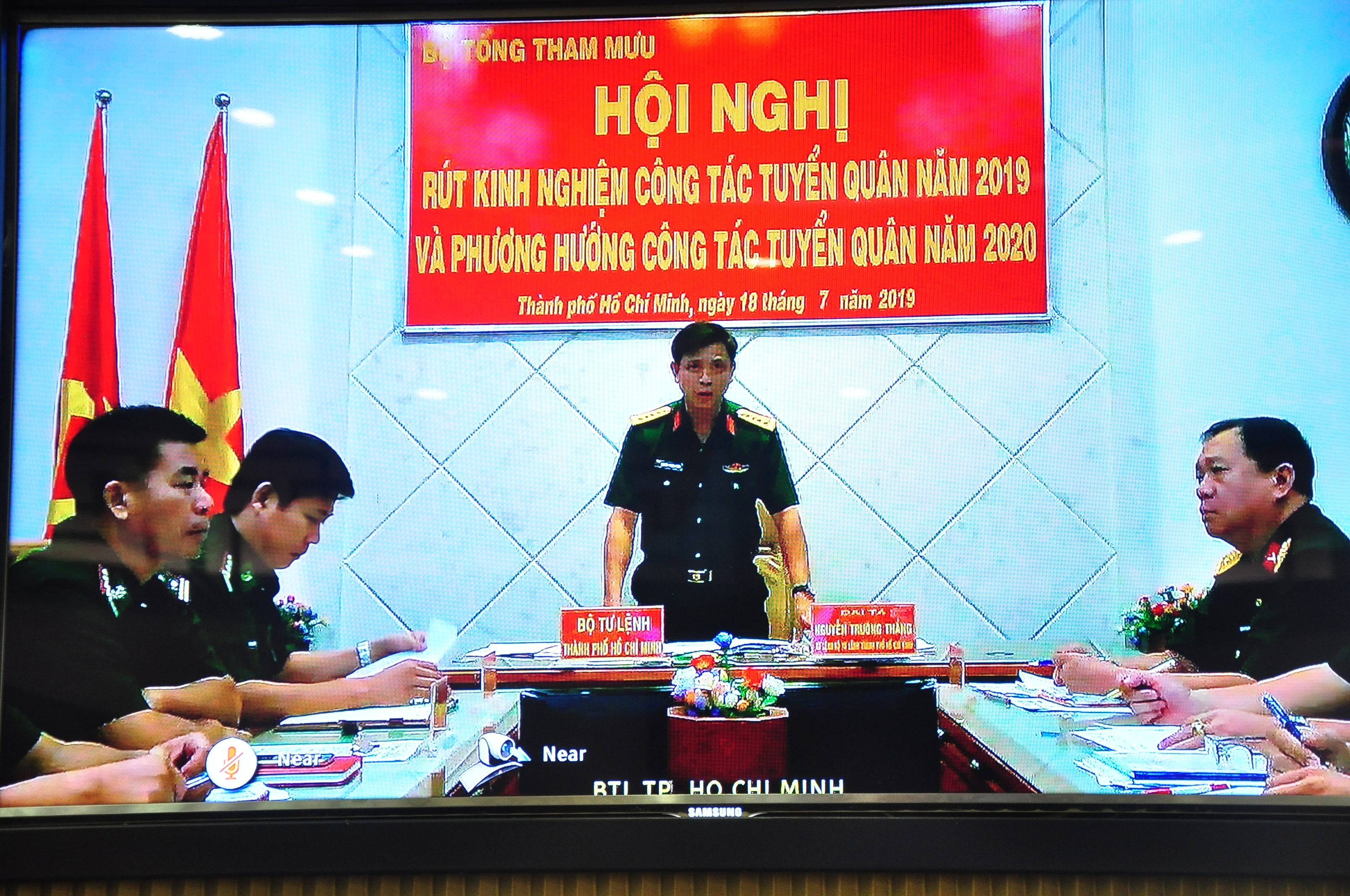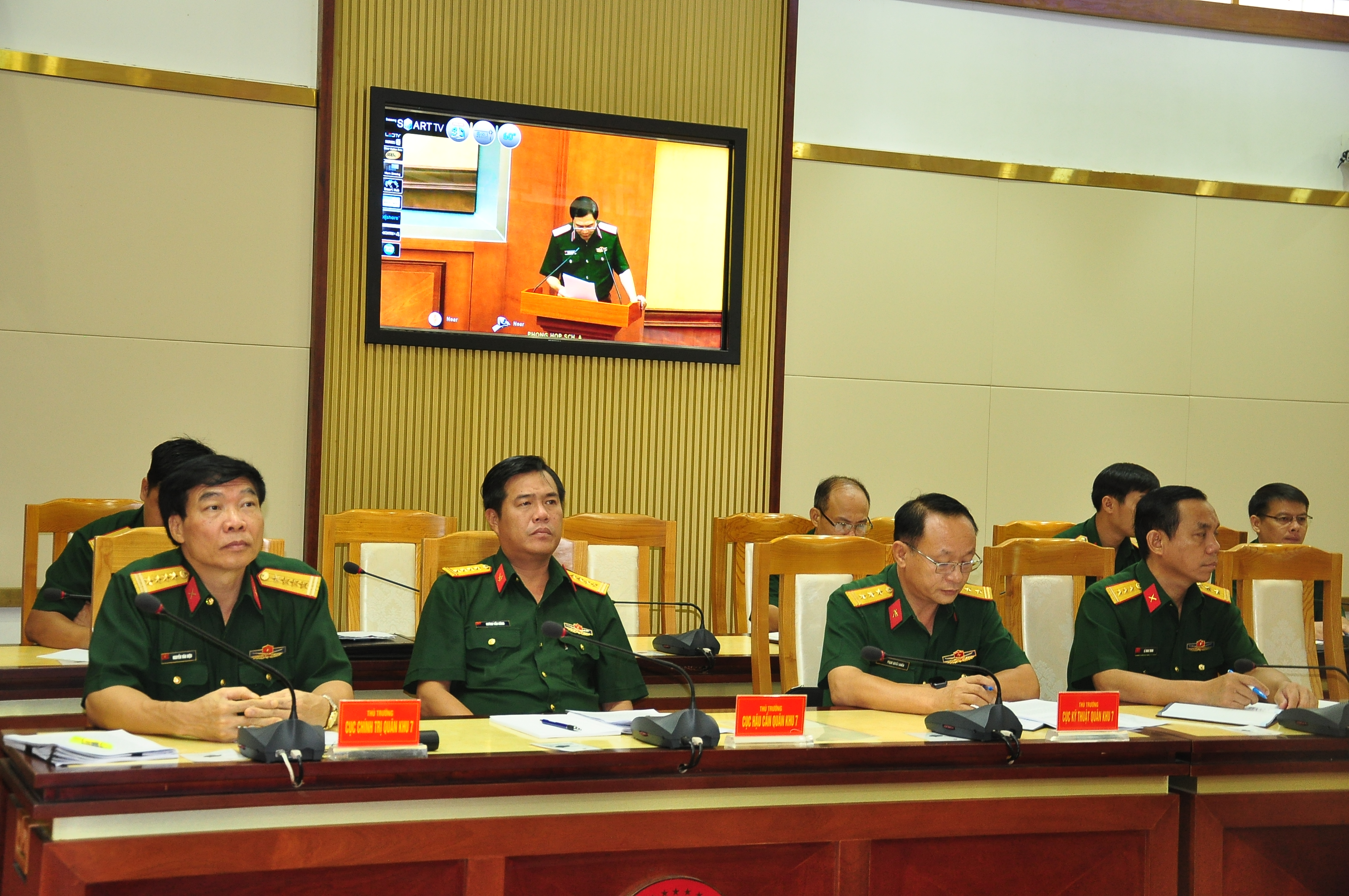 Tại điểm cầu Quân khu 7 Thiếu tướng Du Trường Giang, Phó Tư lệnh Quân khu chủ trì tham dự hội nghị; Đại tá Nguyễn Văn Hiệu, Phó Chủ nhiệm Chính trị và các cơ quan Quân khu tham dự hội nghị.