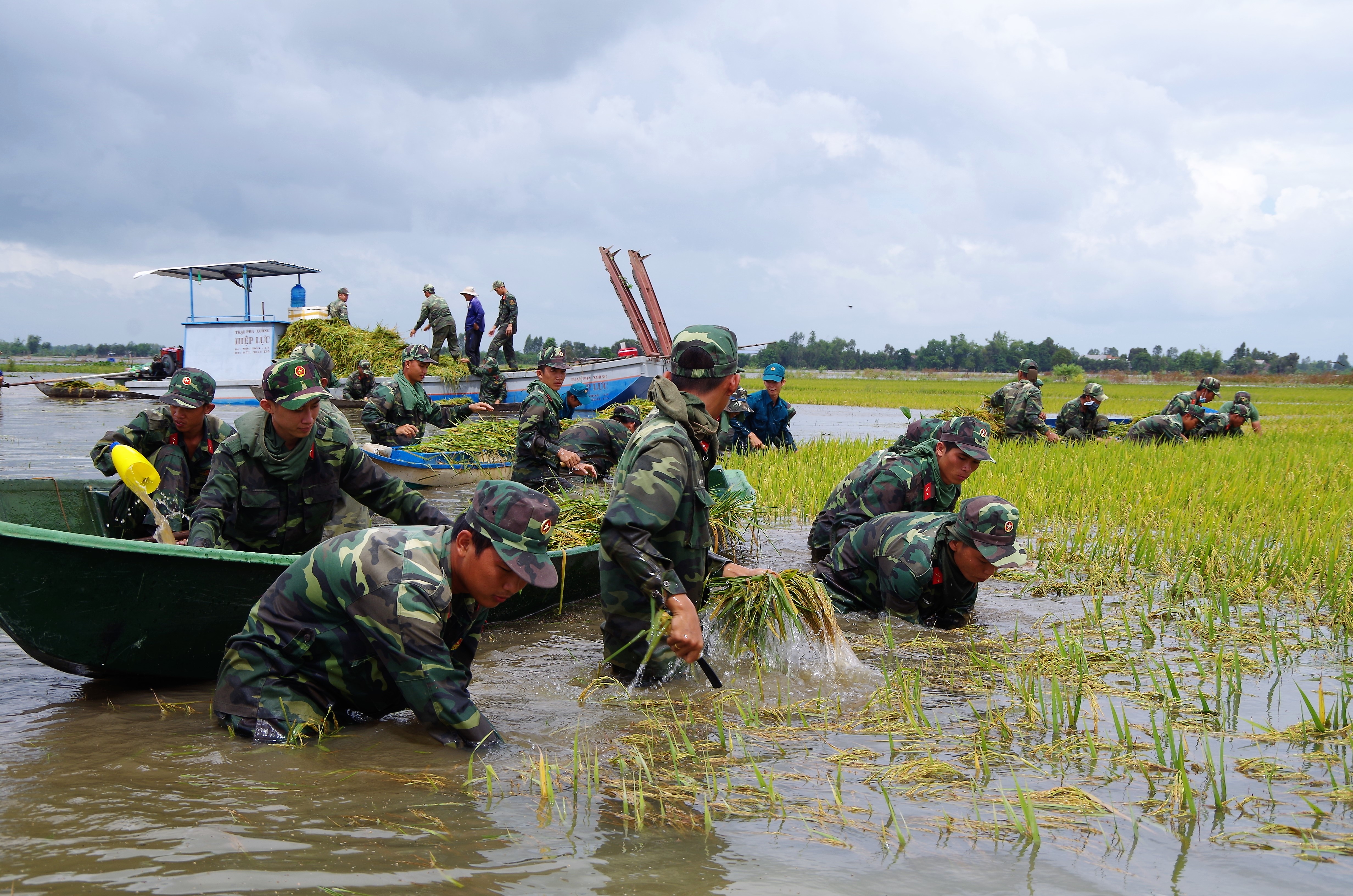 Và người lính lại đồng hành với bà con thu hoạch lúa hè thu trách lũ, đắp lại những con đê…tình quân dân thêm thắt chặt. Các đơn vị còn vận dụng mùa lũ làm thao trường huấn luyện cọ sát thực tế chiến đấu cho bộ đội đóng quân trên địa hình vùng sông nước.
