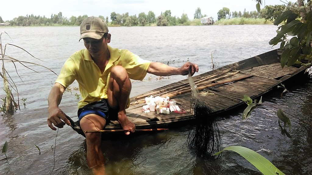 Giăng lưới - nghề mưu sinh chính của bà con mùa lũ.