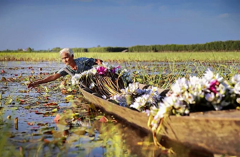 Trên những cánh đồng vùng Tân Hưng, Mộc Hóa, Kiến Tường… bông súng, hoa điên điển rổ bông khi nước vừa ghấp nghé chân bờ ruộng. Cá linh theo dòng nước cũng theo về. Trên mâm cơm người dân vùng lũ những ngày mưa dầm nồi cơm gạo mới ăn với canh chua bông điên điển nấu cá linh non mãi níu bước chân của những người con xa xứ quay về.