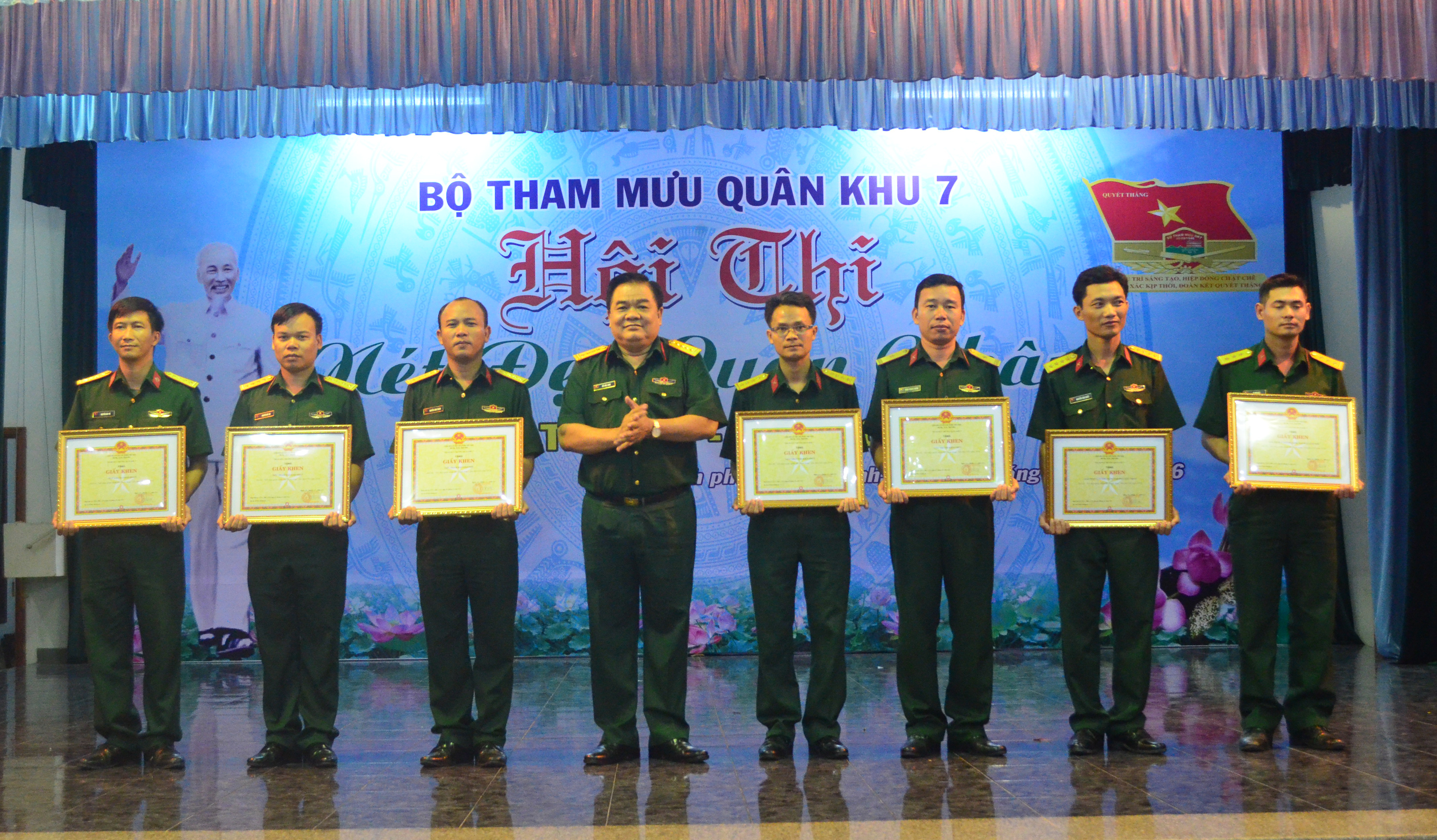 Đại tá Đỗ Văn Long – Chủ nhiệm Chính trị Bộ Tham mưu trao các giải thưởng cho đội thi