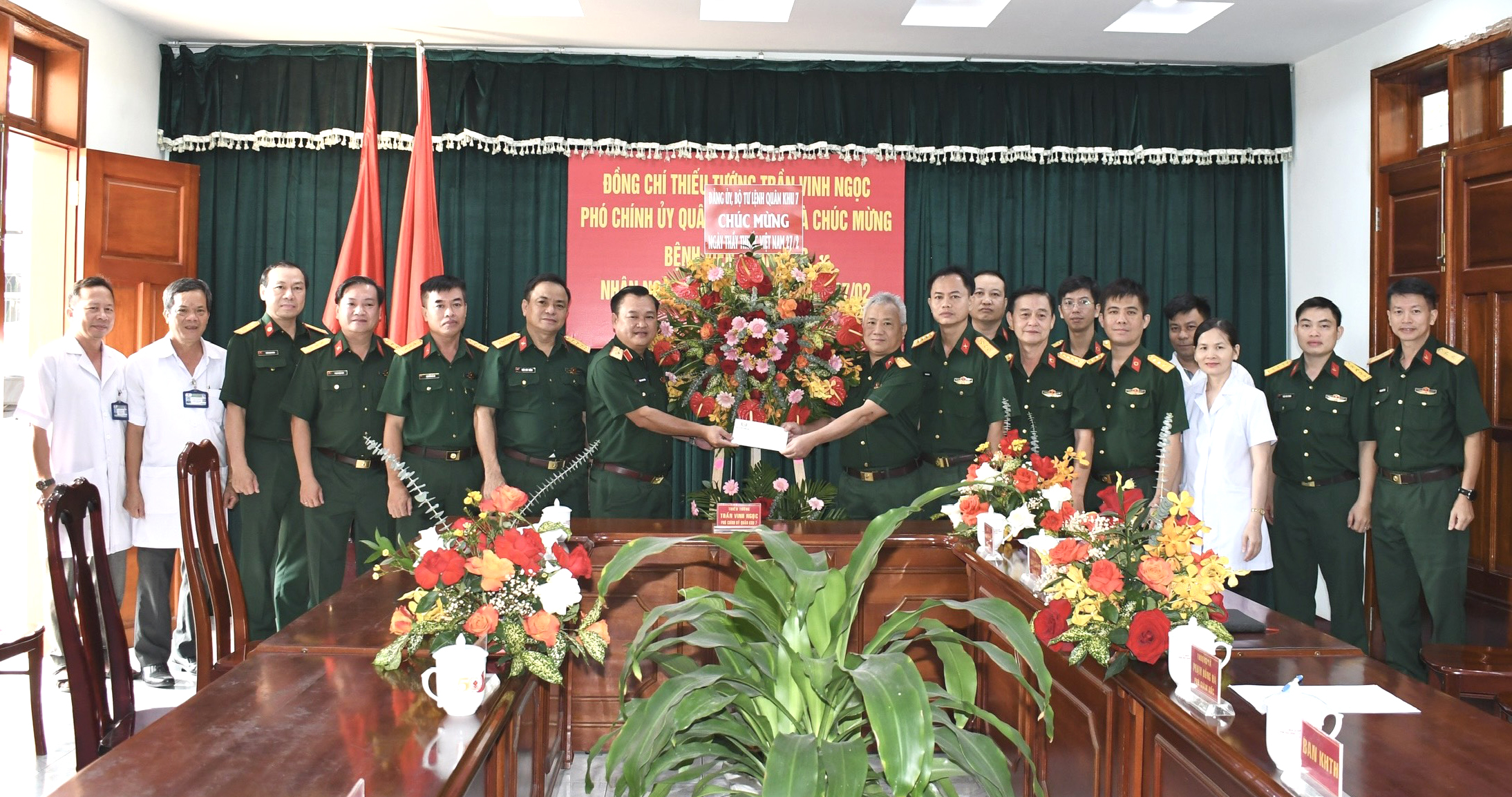 Thiếu tướng Trần Vinh Ngọc, Phó Chính ủy Quân khu tặng hoa chúc mừng cán bộ, nhân viên Bệnh viện Quân y 7B nhân Ngày Thầy thuốc Việt Nam 27-2.