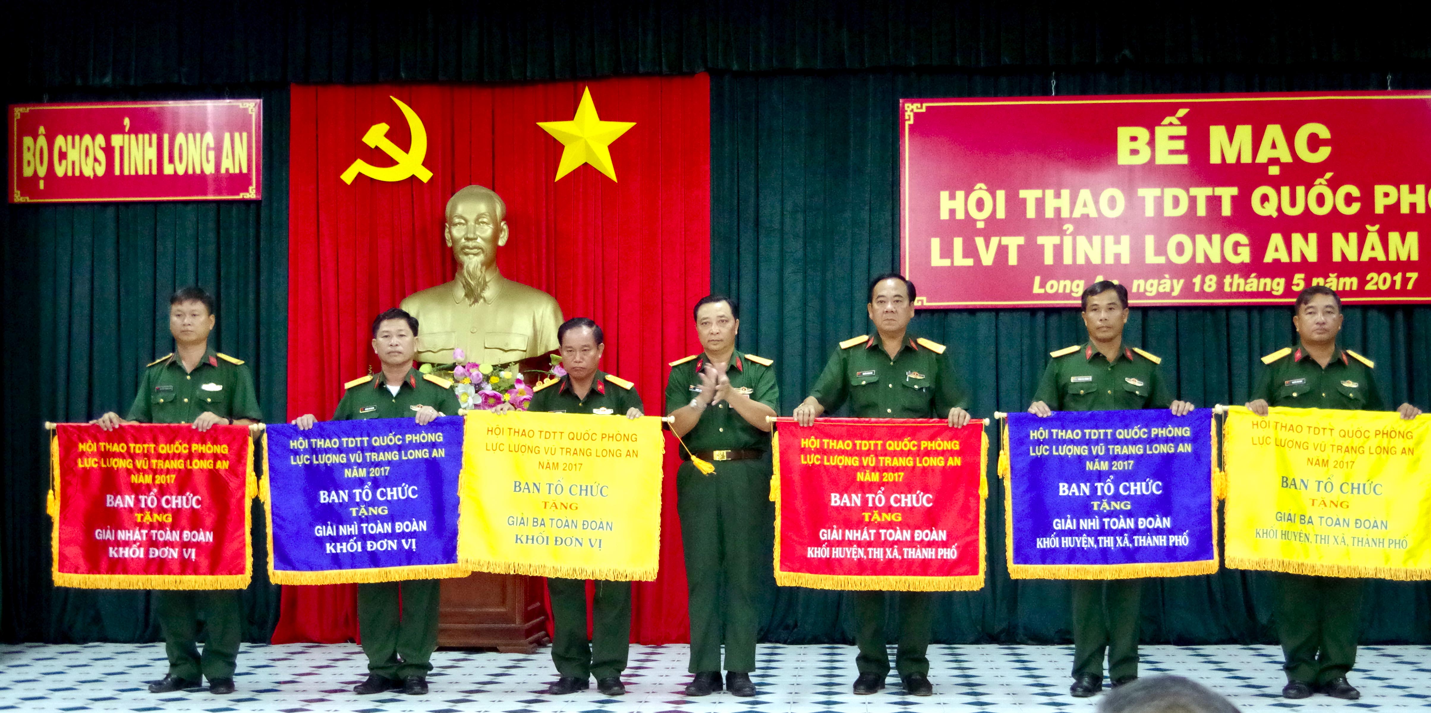 Bộ CHQS tỉnh Long An tặng cờ giải nhất, nhì, ba khối bộ đội thường trực và khối DQTV
