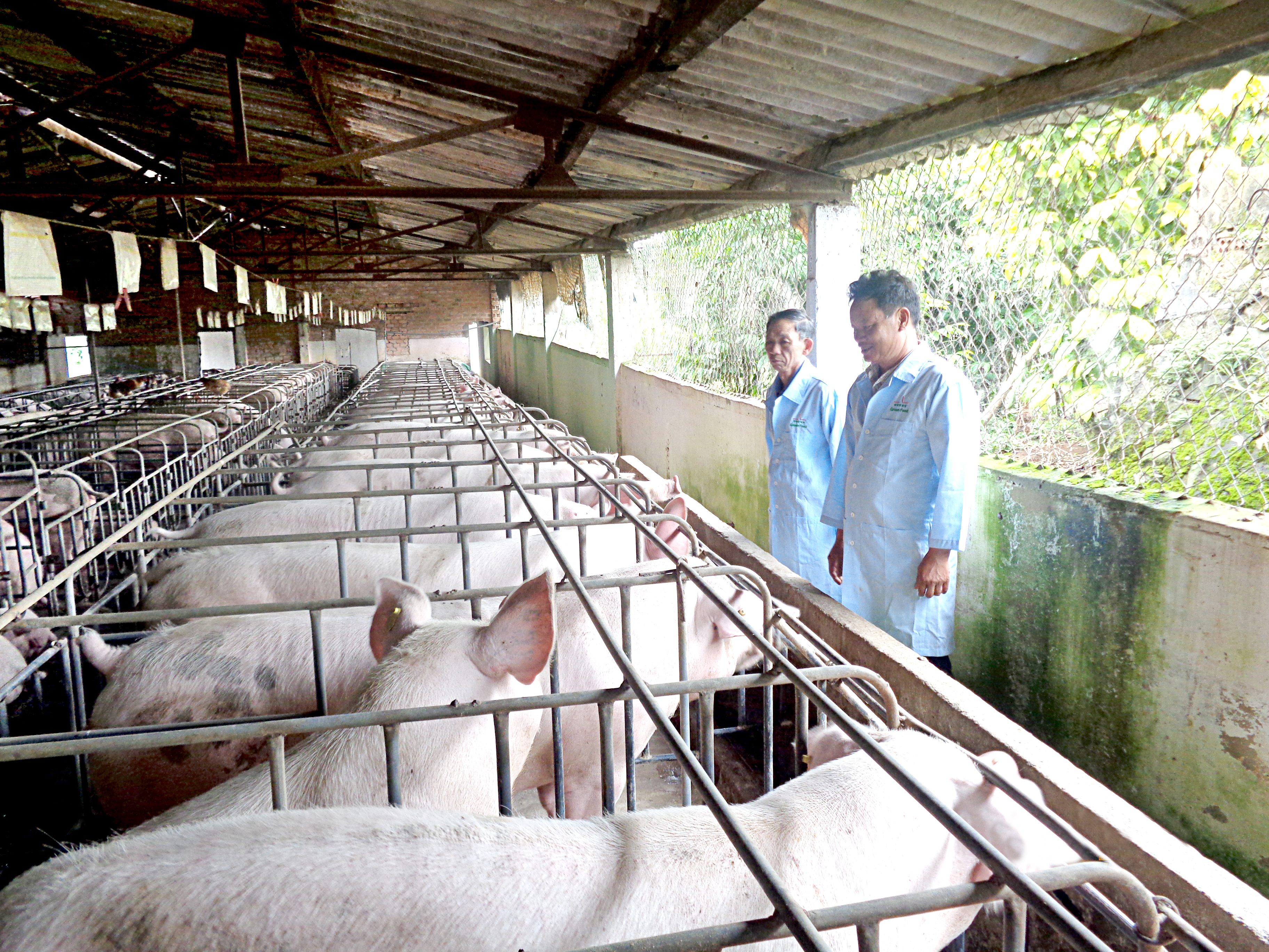 CCB Nguyễn Văn Thạch chăm sóc đàn heo.