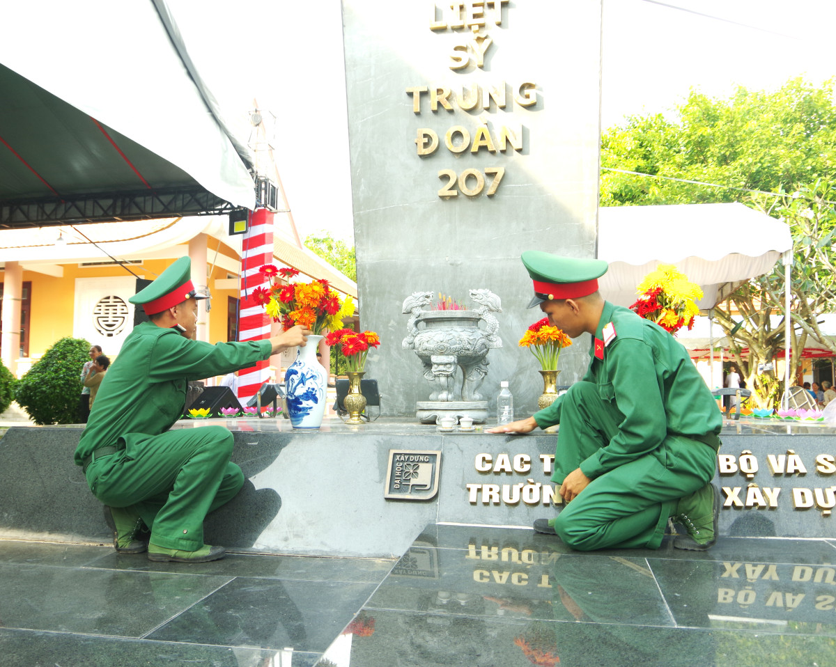 Ngày giỗ các liệt sĩ Trung đoàn 207, cựu chiến binh Phạm Trí Luyện - một trong những chiến sĩ Trung đoàn 207 may mắn còn sống sót, lặn lội vào Long An thắp nén hương cho đồng đội. Ông Luyện xúc động nói: “Đồng đội của tôi hy sinh trên mảnh đất này và mãi mãi nằm lại nơi đây, được người dân, chính quyền chăm lo hương khói, tôi cảm thấy rất ấm lòng và cảm ơn sâu sắc.
