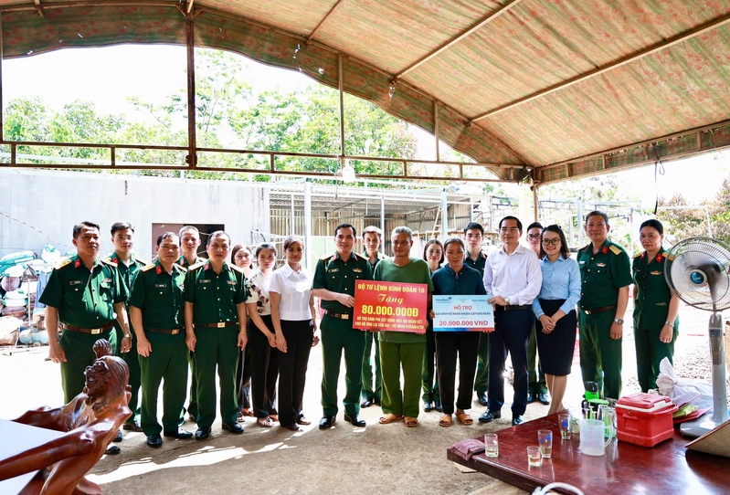 Chia sẻ trước những mất mát, thiệt hại nặng nề của gia đình, Đại tá Trịnh Phạm Hoà, Bí thư Đảng ủy, Phó Tư lệnh Binh đoàn 16 đã ân cần thăm hỏi, động viên và trực tiếp trao 90 triệu đồng từ nguồn hỗ trợ của Binh đoàn 16. Đồng chí yêu cầu Trung đoàn 720 tiếp tục quan tâm, chủ động huy động các nguồn lực, tổ chức hỗ trợ ngày công, vật chất, giúp gia đình sớm khắc phục hậu quả, ổn định chỗ ở và yên tâm lao động sản xuất.