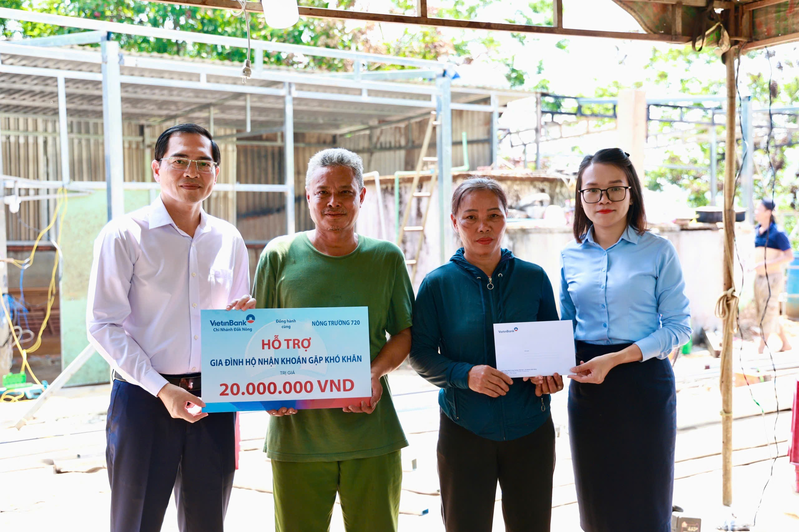 Nhân dịp này, ông Nguyễn Đức Minh Trí, Giám đốc Ngân hàng Công thương Chi nhánh Đắk Nông, trao hỗ trợ 20 triệu đồng; Trung đoàn 720 hỗ trợ thêm 30 triệu đồng, đồng thời huy động cán bộ, chiến sĩ tham gia giúp đỡ ngày công xây dựng, sửa chữa nhà ở cho gia đình.