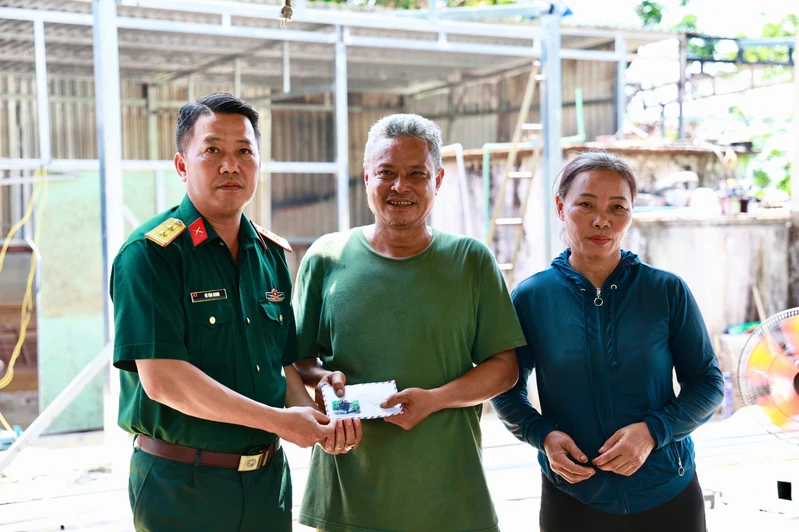 Đại tá Trịnh Phạm Hoà, Bí thư Đảng ủy, Phó Tư lệnh Binh đoàn 16, thăm hỏi, động viên và trao 90 triệu đồng hỗ trợ gia đình bị cháy nhà, giúp sớm khắc phục hậu quả, ổn định cuộc sống và sản xuất.
