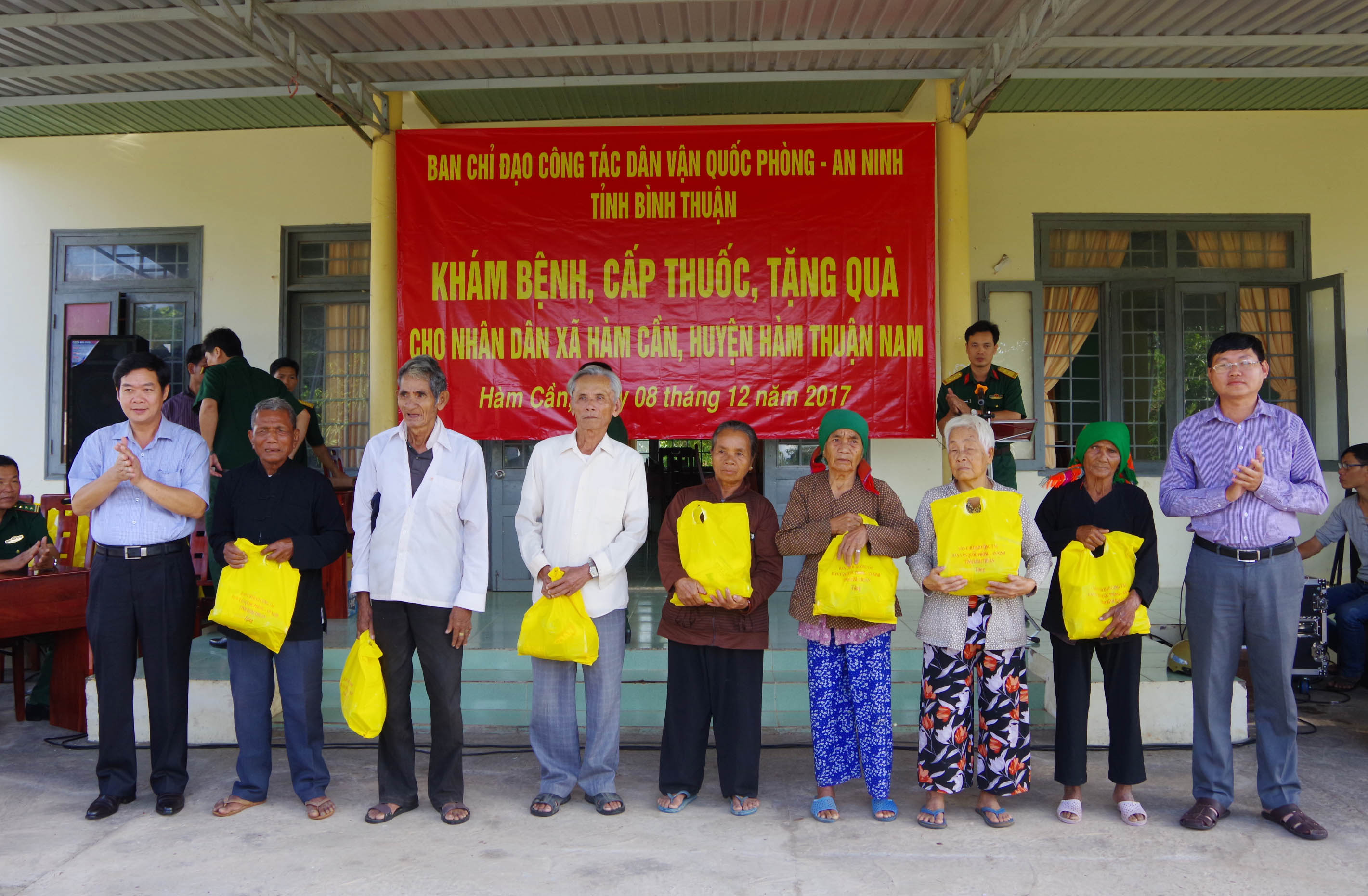 Đoàn công tác tặng quà bà con xã Hàm Cần.