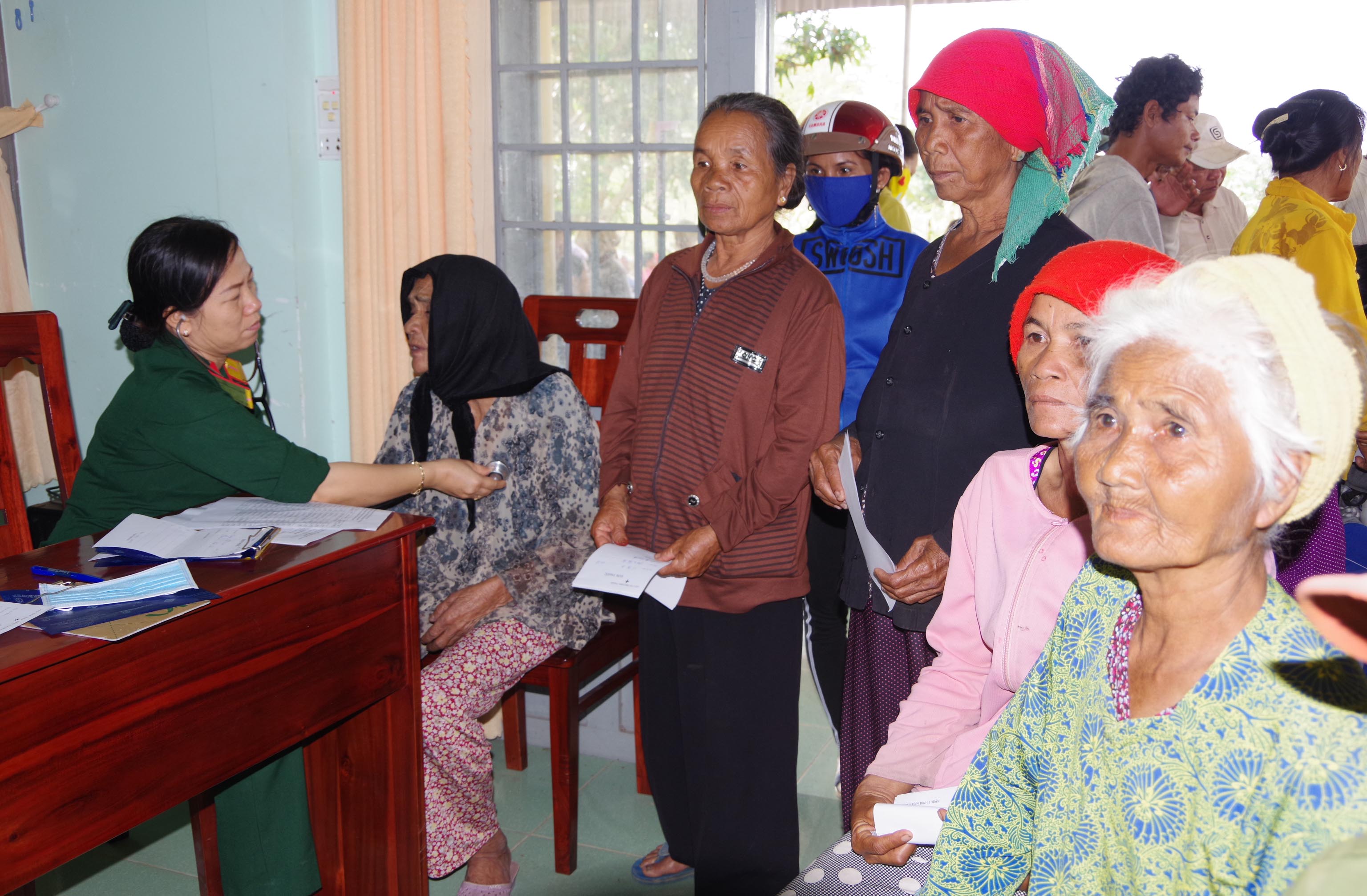 Ngoài việc chăm sóc sức khỏe cho nhân dân, đoàn công tác còn tặng cho mỗi người dân đến khám bệnh, gia đình chính sách, người có hoàn cảnh khó khăn 1 phần quà, gồm những thực phẩm dùng trong gia đình. Đây là món quà tình nghĩa của đoàn công tác, của bộ đội và Hội Chữ thập đỏ tỉnh chia sẻ với đồng bào. Mong muốn giúp bà con bớt khó khăn, có sức khỏe tốt để vươn lên xây dựng cuộc sống mới.