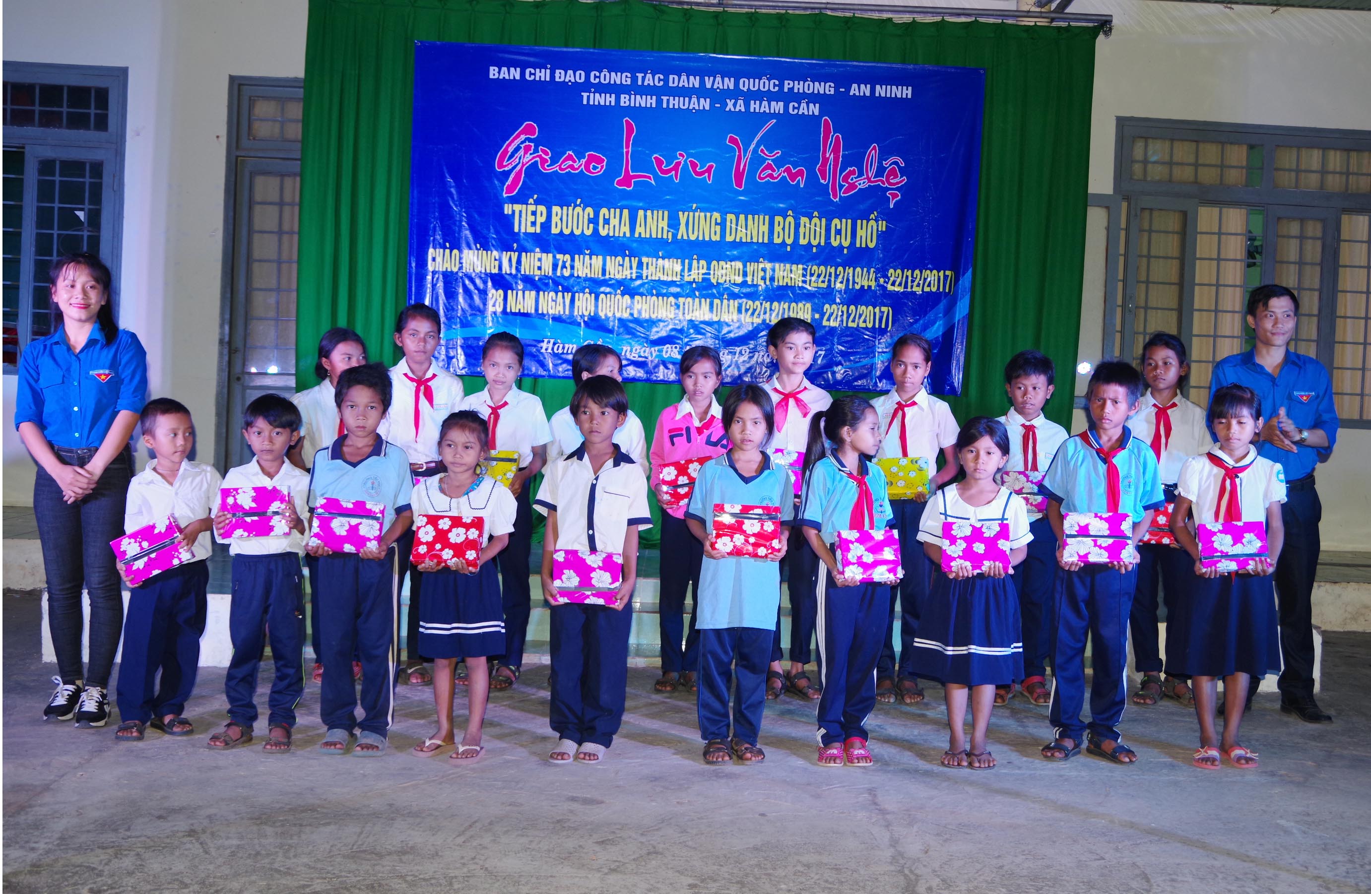 Với lực lượng nòng cốt của Đội tuyên truyền xung kích LLVT tỉnh, đoàn viên thanh niên xã Hàm Cần và các em học sinh của các trường đã tổ chức đêm giao lưu văn nghệ với chủ đề “Tiếp bước cha anh, xứng danh Bộ đội Cụ Hồ”. Các bài ca cách mạng, dân ca cùng với những điệu múa truyền thống của đồng bào càng làm phong phú thêm đời sống văn hóa tinh thần, gắn kết mối tình quân dân.